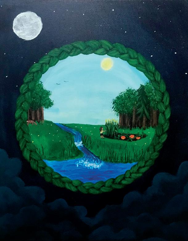 Emma Brant-Edwards is a student artist from Tyendinaga Mohawk Territory whose work incorporates Mohawk culture across painting, pottery, and textile practices.