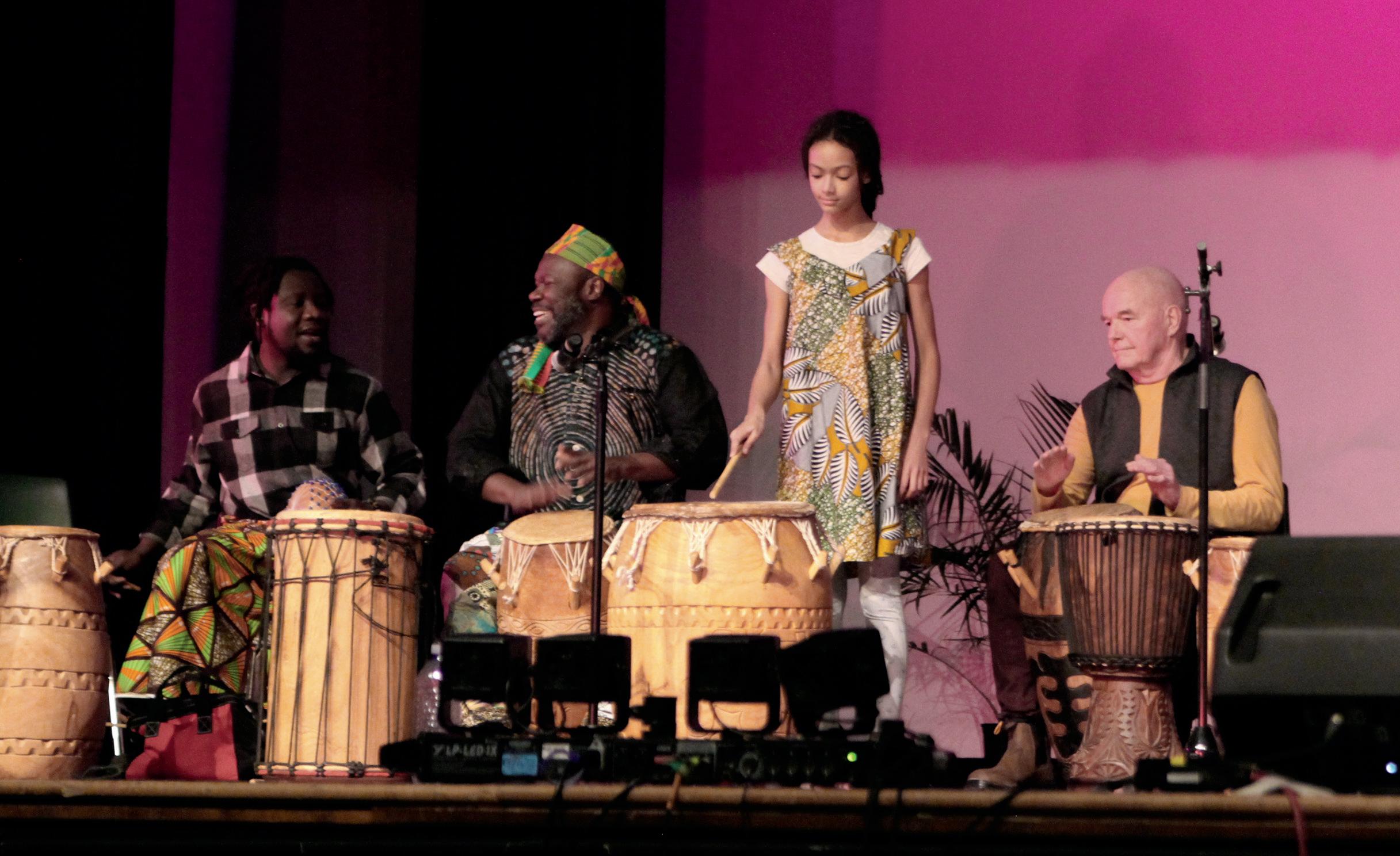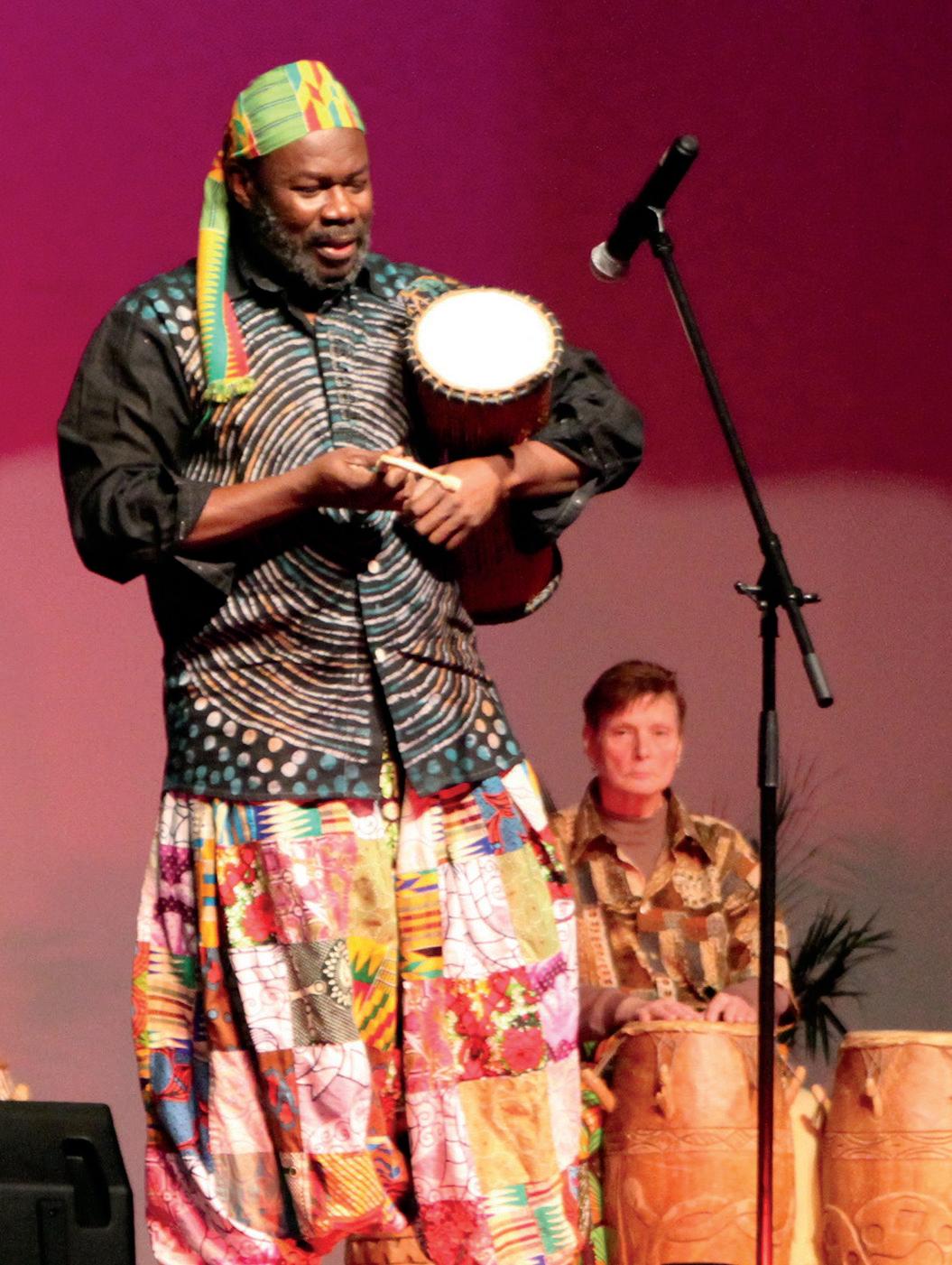 The Institute’s President, Isaac Akrong, will also lead a course titled West African Drumming: Technique, Ensemble, and Cultural Context. During the concert, audiences were introduced to the sounds and rhythms of talking drums through mnemonic phrases like, “BA