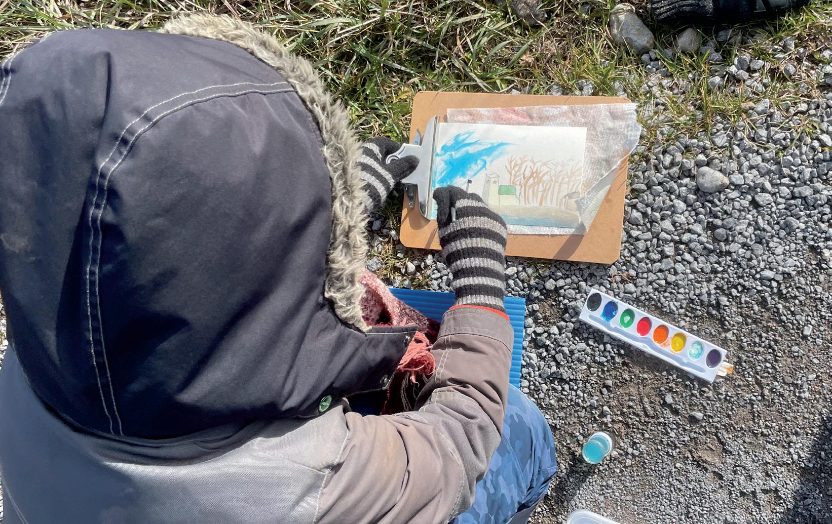 Students then travelled to the Prince Edward Point National Wildlife Area to paint en plein air. Surrounded by the vast natural landscape, they documented local flora and fauna while learning about geological forces, human impact, and the fragility of South Shore ecosystems. Activities and lessons also introduced Indigenous perspectives and knowledge.