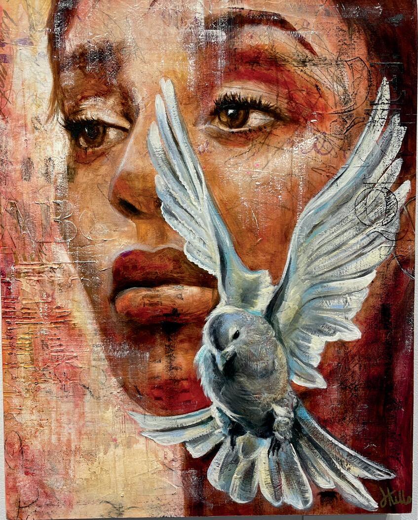 Dale Christine Ballard is a mixed media artist whose work draws from nature, spirituality, and found materials. Birds, particularly crows and ravens, are recurring symbols in her richly textured pieces.