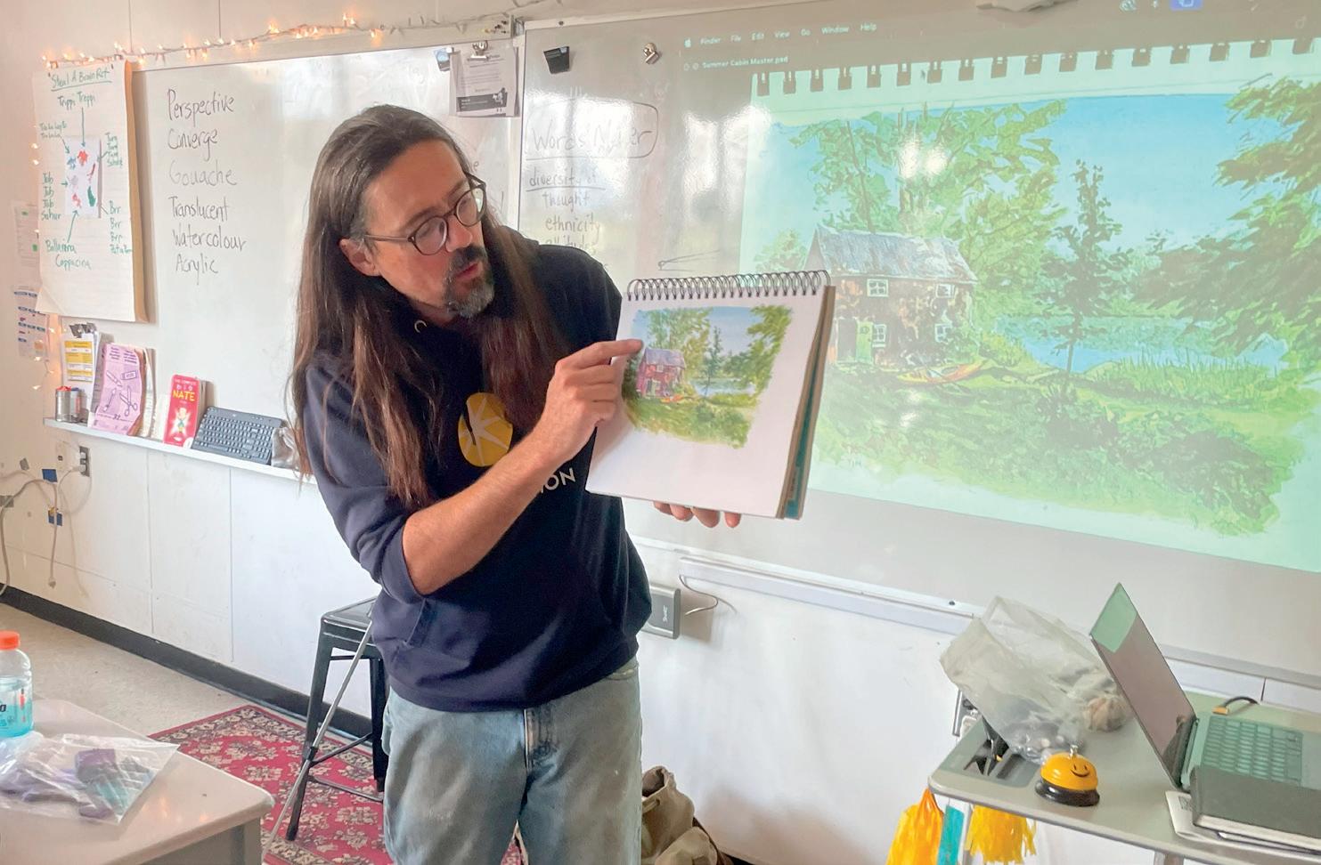 The first phase of the four-part program took place in the classroom, where students learned the fundamentals of watercolour painting. Snyder supported