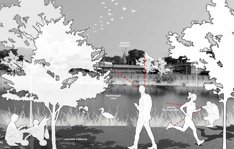 The temple is the spiritual center of the region. Rudra Sagar Lake which is one of the seven holy reservoirs worshipped here forms the foreground for the temple. The study revolvedaround problems like urban congestion that has by far changed the visual quality and environment of the temple, thus leading to loss of character. This assisted in redefining the modern landscapes of a culturally significant structure and the importance of crowd management and multi- utility ephemeral landscapes flexible in use for a longer time owing to the surrounding land uses. It also targeted the revival of cultural and ecological value of the manmade lake on site along with possible pedestrianisation of the 750 m