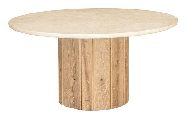 Elegant fusion of gentle motion and modern elegance, the round top and spherical leg design of the Calibre Round Dining Table evoke soft, flowing lines, while the vertical arrangement of wood pieces introduces a contemporary touch.