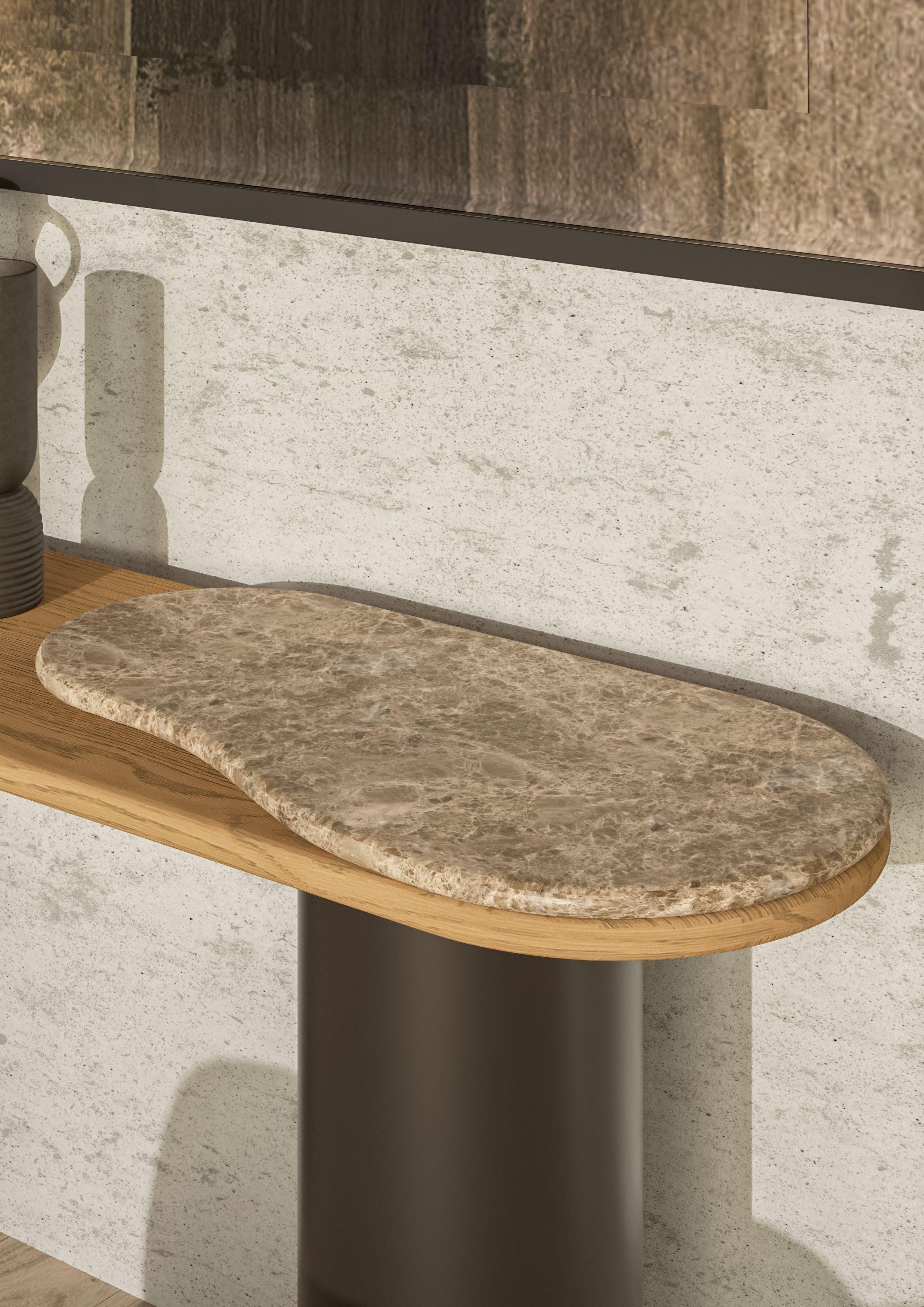 deļ¬ning tactile luxury through form and material, reļ¬ning balance between organic beauty and modern sophistication