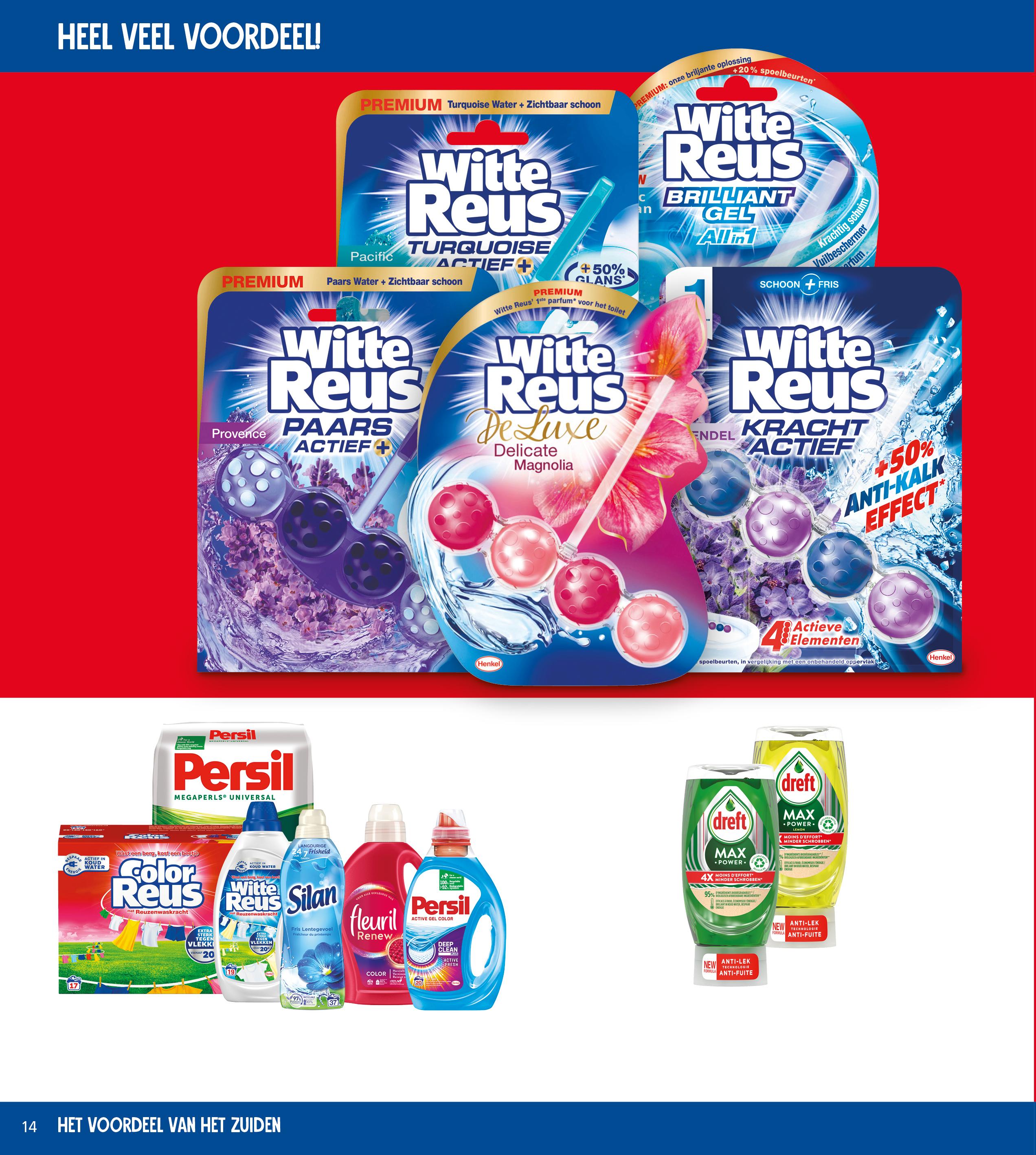 Witte Reus toiletblokken alle varianten 5x pak 1 stuk m.u.v. voordeelpak 16,4 5 - 19,45 6,58 -7,78 gratis 2+3 gratis 1 +1 Persil, Silan, Reus of Fleuril alle varianten 2x pak, fles of zak 9,38 - 21,98 4,69-10,99 gratis 1 +1 Dreft handafwas Max Power alle varianten 2x fles 370 ml 7,98 3,99 1+1 GRATIS: 50% korting op de totaalprijs van 2 producten. 2+3 GRATIS: 60% korting op de totaalprijs van 5 producten. = 60% KORTING Oók deze folder AlleFolders app lees je in de Download AlleFolders allefolders.nl AlleFolders
