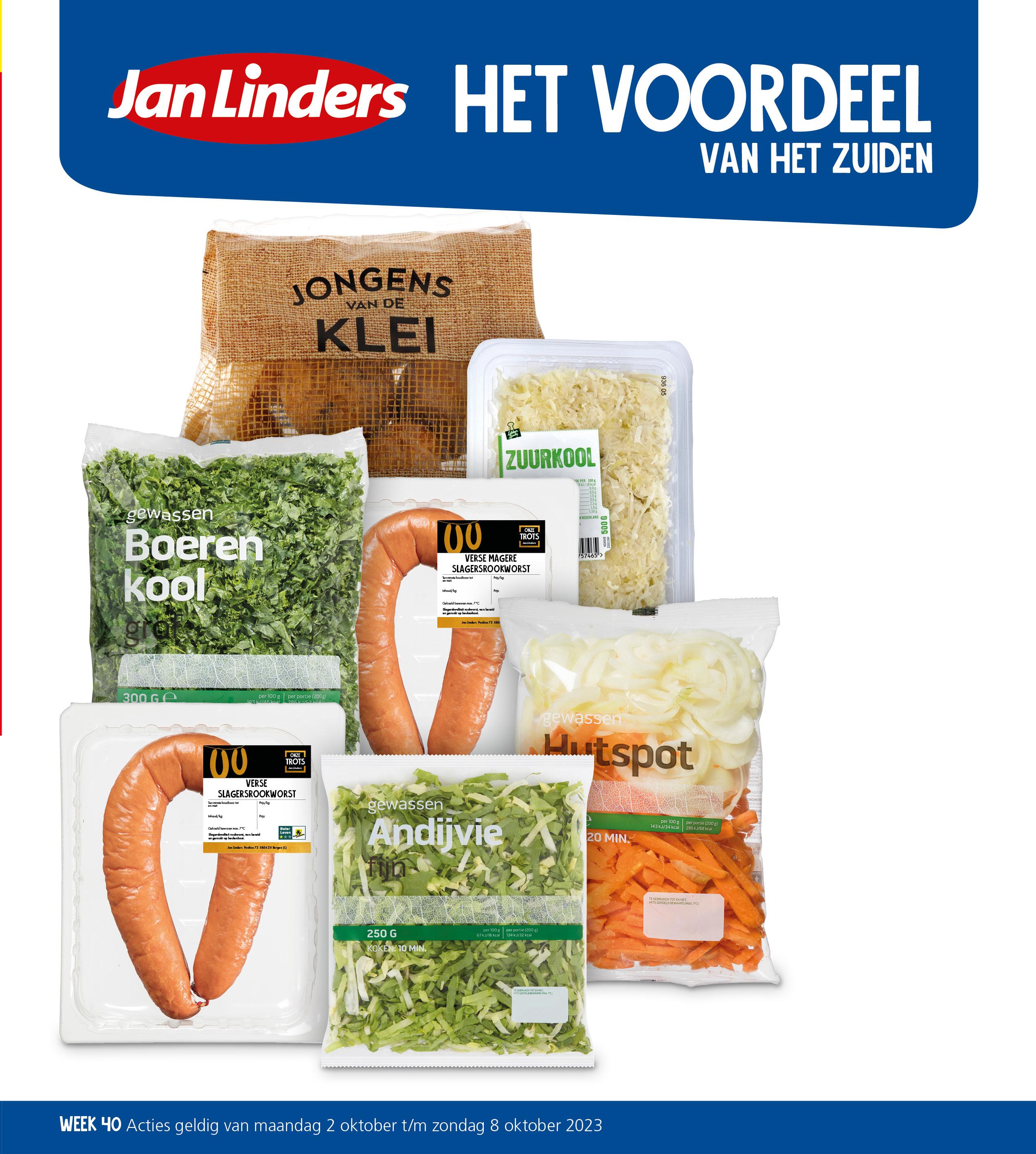 Aanbieding uitverkocht? Vraag gerust een tegoedbon (m.u.v. op=op en producten buiten standaard assortiment). Het aantal eenheden per actie is vastgesteld op max. 12 per klant (particulieren). Voor bieraanbiedingen: max. 6 kratten/trays per klant. Geen alcohol-/tabakverkoop aan personen <18 jaar. Bij een actie geldig bij meerdere stuks, is de actieprijs alleen van kracht bij het genoemde aantal producten. Bloemen zijn vanaf dinsdag verkrijgbaar en worden niet verkocht in Gennep, Brunssum en Maastricht De Heeg. Onder voorbehoud van prijswijzigingen/zetfouten. Folder niet ontvangen? Meld dit op janlinders.nl/folderklachten Heb je nog tips of vragen? Ga naar janlinders.nl/klantenservice