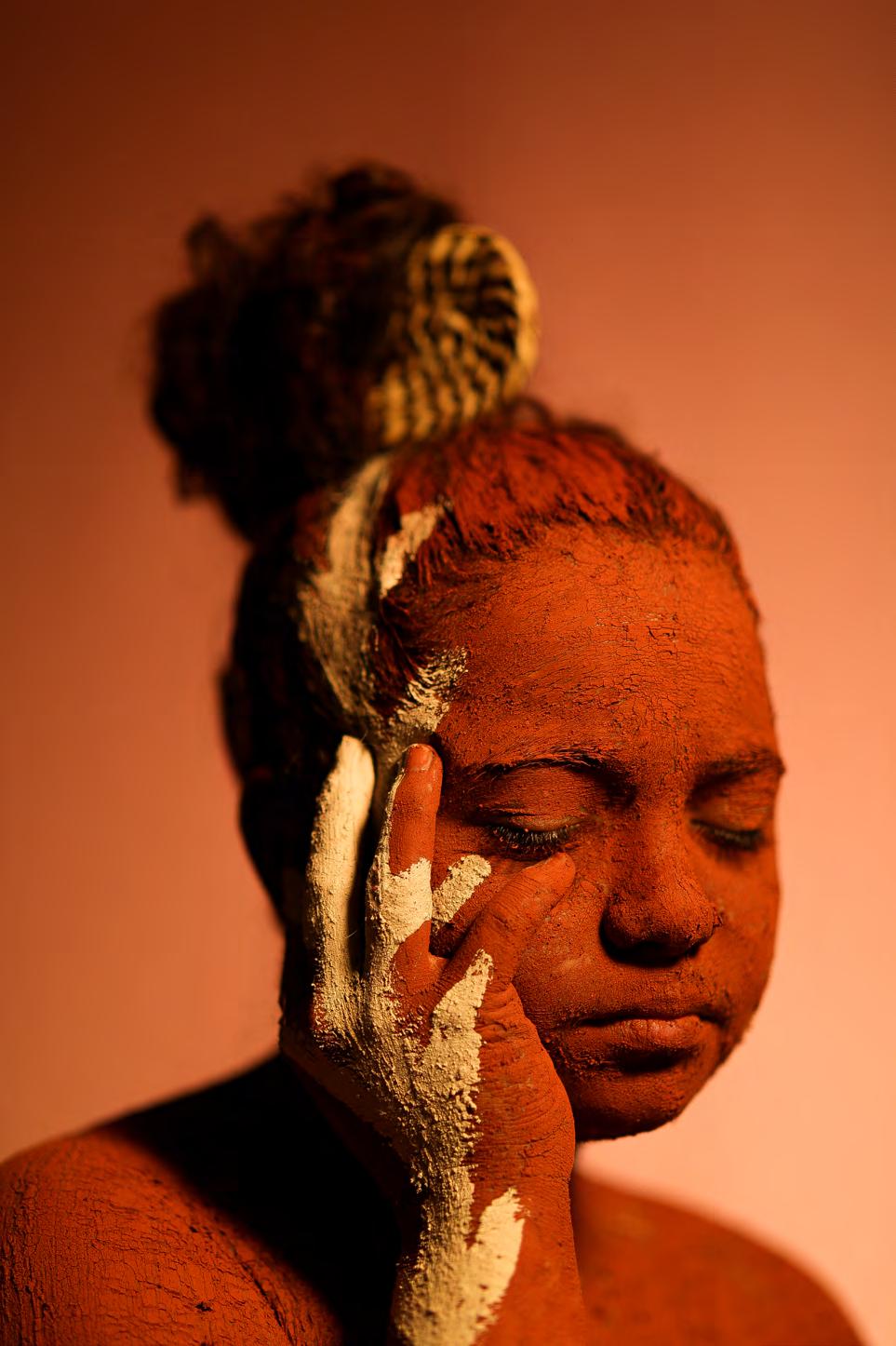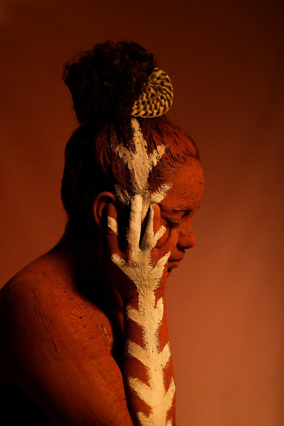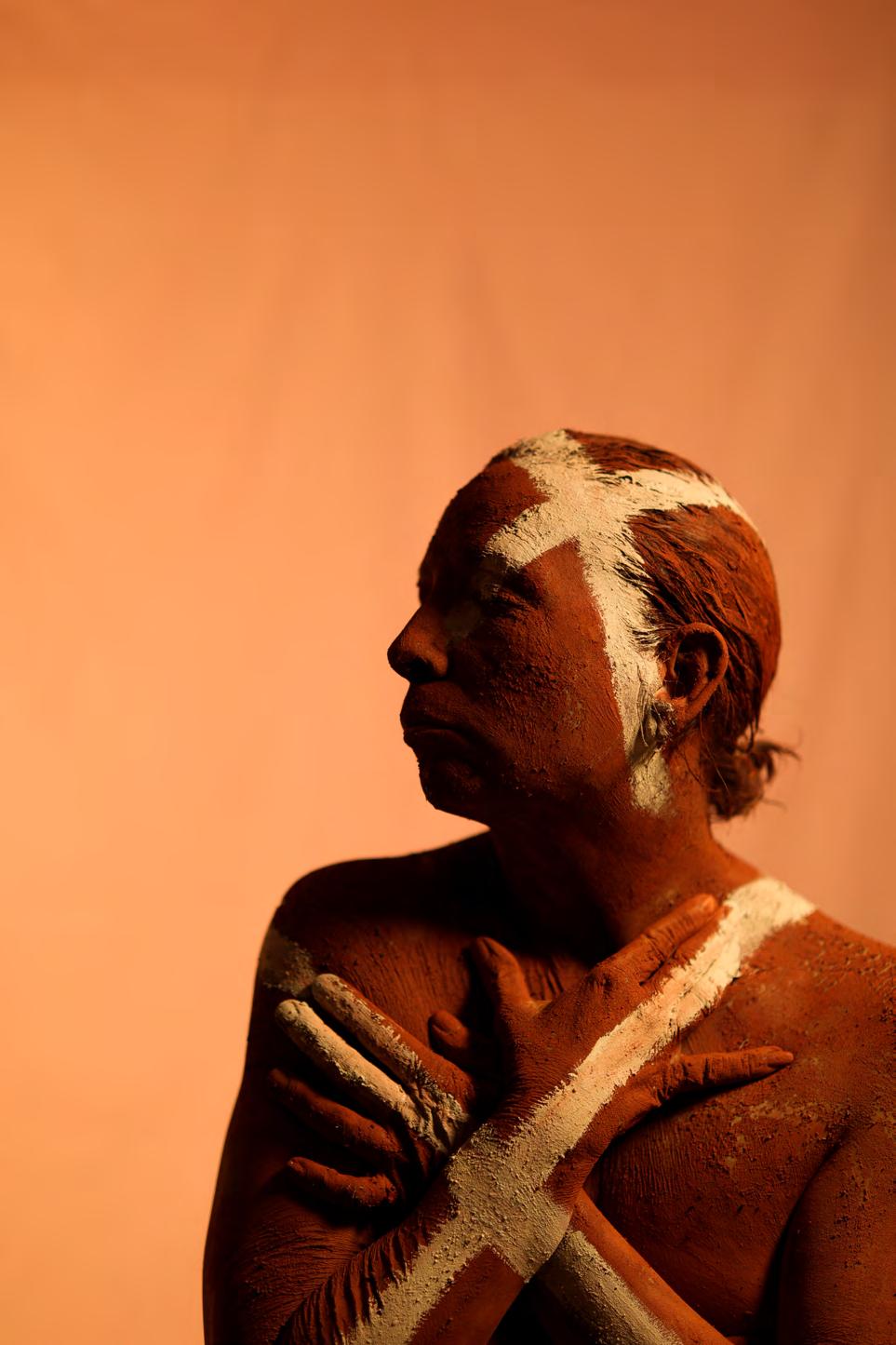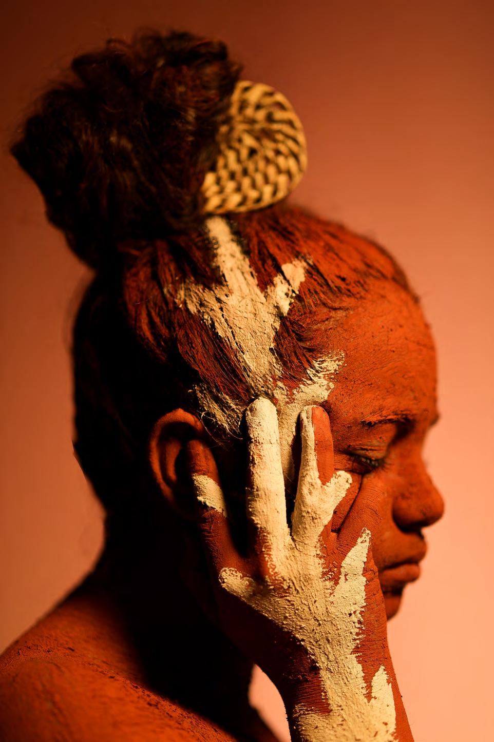 Through a new series of photographic works, our exhibition‘Medicine Clay – Gidjarr’continues the use of the medicinal clay with the red ochre to adorn four generations of family and to document the continued connection with our people, place, and practices.