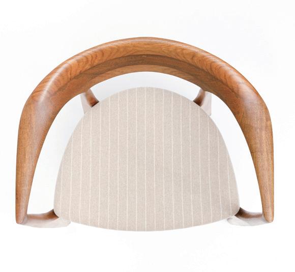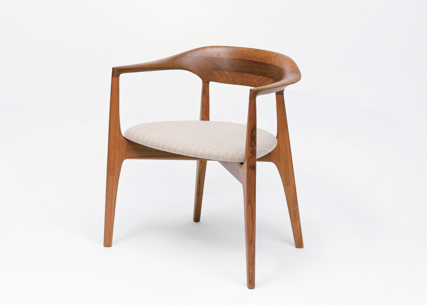 今回は10個のデザイン賞を世界5カ国で受賞し ているcocoda chairをご紹介します。木部には 希少なミャンマーチークを、座面にはロロピアー ナ製の高級カシミアを使用した限定1脚になりま す。作者の松岡茂樹は家具職人として卓越した技 術やデザイン力、その分野での活躍が評価され厚 生労働大臣より「卓越した技能章、現代の名工」 に2020年度の最年少で選ばれました。