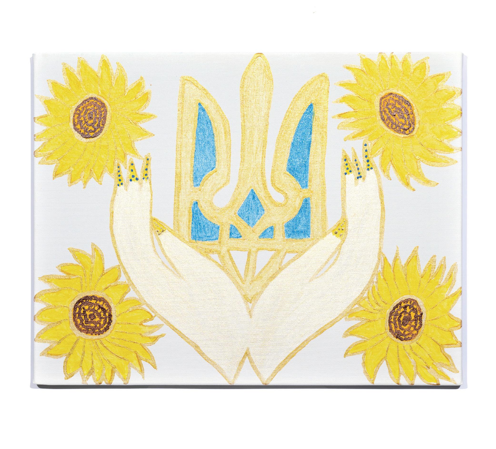 いつ故郷に戻れるか分からない不安の中で、ウク ライナの平和への願いを込めて絵を描き続けてい ます。