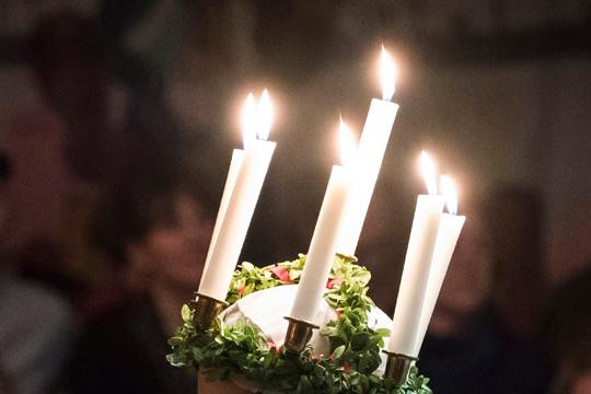 Hela adventstiden leder oss in till firandet av det stora undret – Gud själv som låter sig födas till jorden som ett litet barn. Vi hoppas att du i denna mörka period av året vill komma in i kyrkans varma ljus och låta dig omslutas av budskapet att Gud är nära.