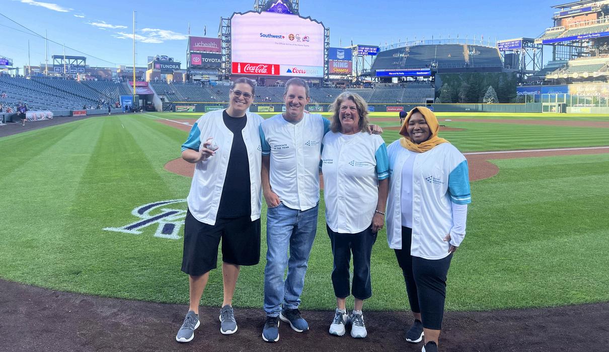 JA’s 2024 award winners were honored during a Colorado Rockies Game. JA Educator of the Year Rachel Caliga threw out the first pitch and was joined on the field by JA Advocate of the Year Steve Goldman JA
