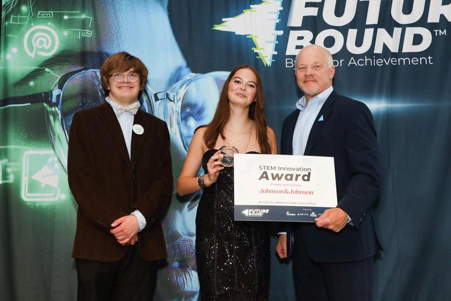 Venture Academy of Leadership and Entrepreneurship students Scarlett Marrone and Hunter Jackson received national recognition by winning the Johnson & Johnson STEM Innovation Award at 2025's Future Bound by Junior Achievement