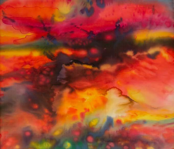 Later, I became deeply attracted to the play of colours on silk. The pigments are fluid and interact with one another—pushing,