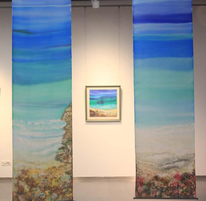 “At the Seaside”, International Contemporary Art Invitational Exhibition, organized by School of Fine Arts and Design at Hebei Normal University, 2025 Installation Art, Water Colours on Silk 2×250×50 cm, and 50×50 cm