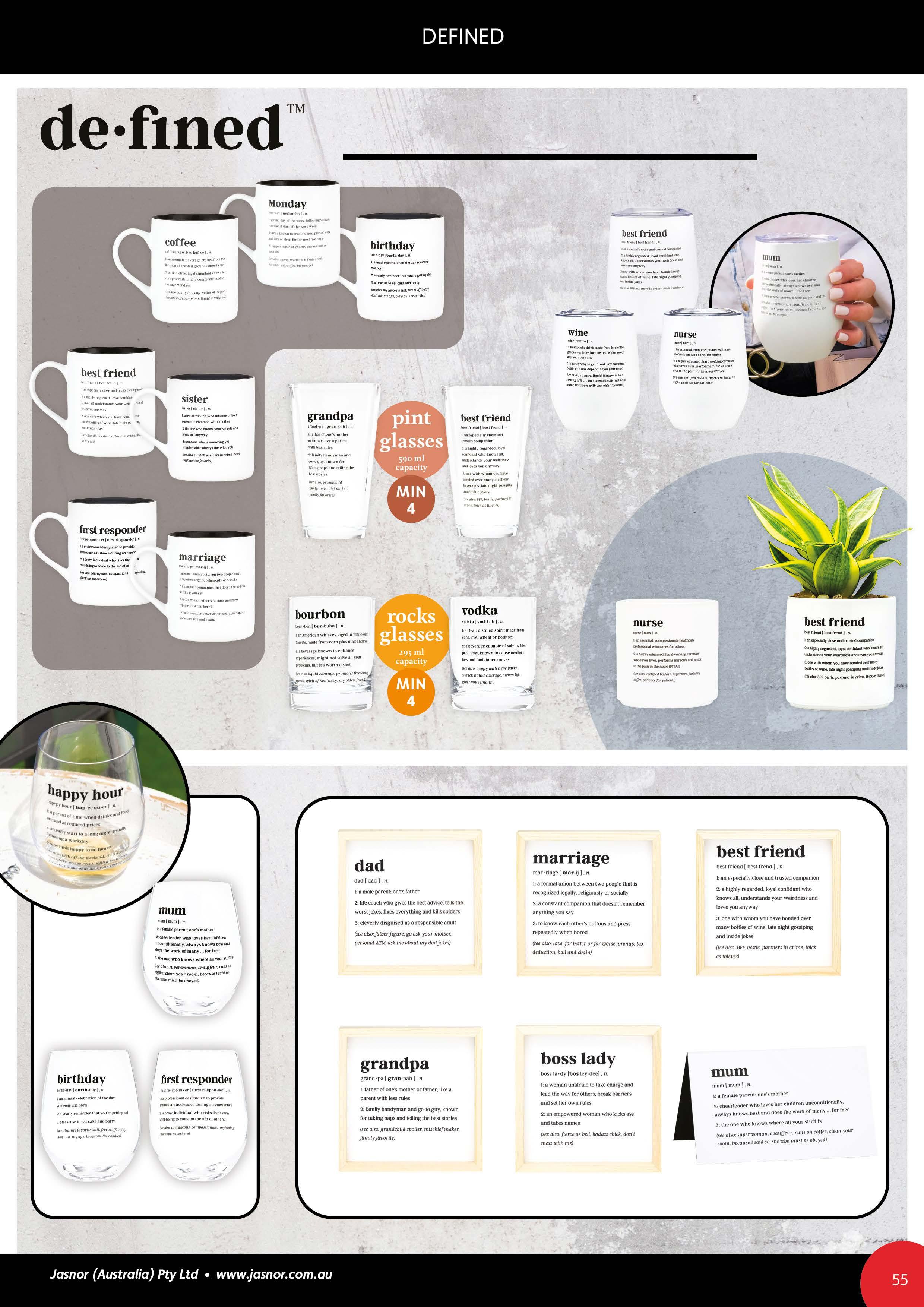 AF131043 AF131009 stemless wine glasses MIN 2 AF130286 mugs 590 ml capacity MIN 4 470 ml capacity framed art MIN 2 AF130277 AF130275 AF130276 AF130279 AF131021 AF130274 10cm x 10cm AF131042 AF131040 AF129693 AF131001 AF129685 AF131005 AF129682 AF131004 AF129691 A collection of giftware featuring witty original definitions to give meaning to everyday life! 590 ml capacity MIN 3 AF115401 4over 0 designs AF115463 AF131036 AF131035 AF131034 Use as a planter or pen pot planters * Plants not included AF115444 11cm H AF115446 11cm H MIN 4 AF131011 AF131010 thermal cups desk sign MIN 6