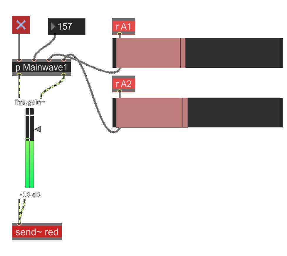 During the performance, the interaction between users and the interface will be transmitted in real time to Max/ MSP as digital data via Arduino. After processing, this data controls the message signal to frequency modulate the carrier signal, the simple harmonic waves, thereby creating FM-processed sound tracks that change in real time.
