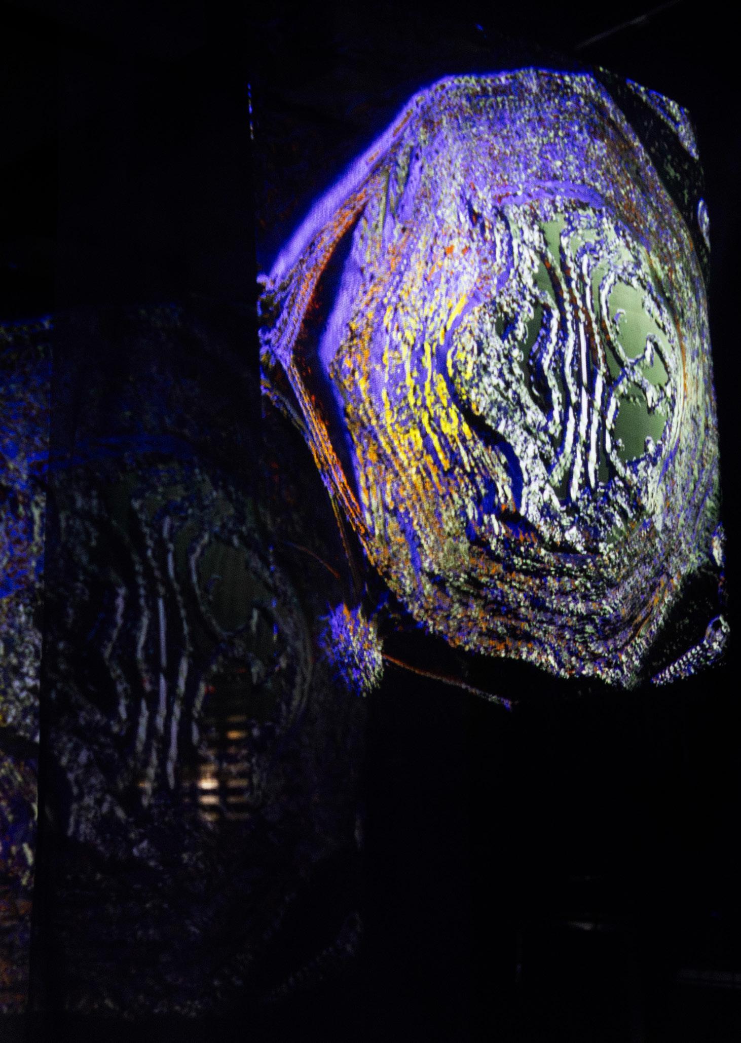 The visual transformation of sound in Alvin Lucier's work carries a key meaning: a form of reinterpretation. In our remaking of this piece, we aim to integrate modern technologies within the context of a contemporary remake, presenting a new perspective on the re-interpretation of sound images. Alvin believed that the graphic representation of sound waves—the process of making the invisible visible— reflects a profound understanding and detailed observation of the world. This kind of thinking provides us with an entry point for visual creation - the micro world. Meanwhile, through our in-depth communication with FOLD, we believe that the locality of visual creation is also particularly important, and decided to combine them.