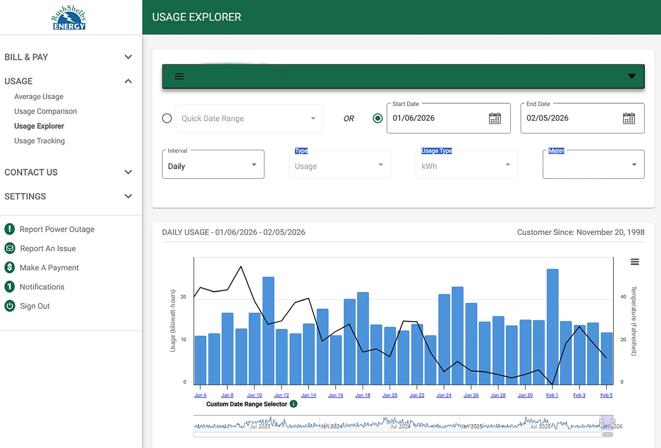 While we’re unlikely to forget how much we’ve had to bundle up this winter, it is easy to lose track of which days brought the most extreme cold and the highest energy use. SmartHub offers multiple graphs that give insight into the specific days you used the most electricity and what the temperatures were.