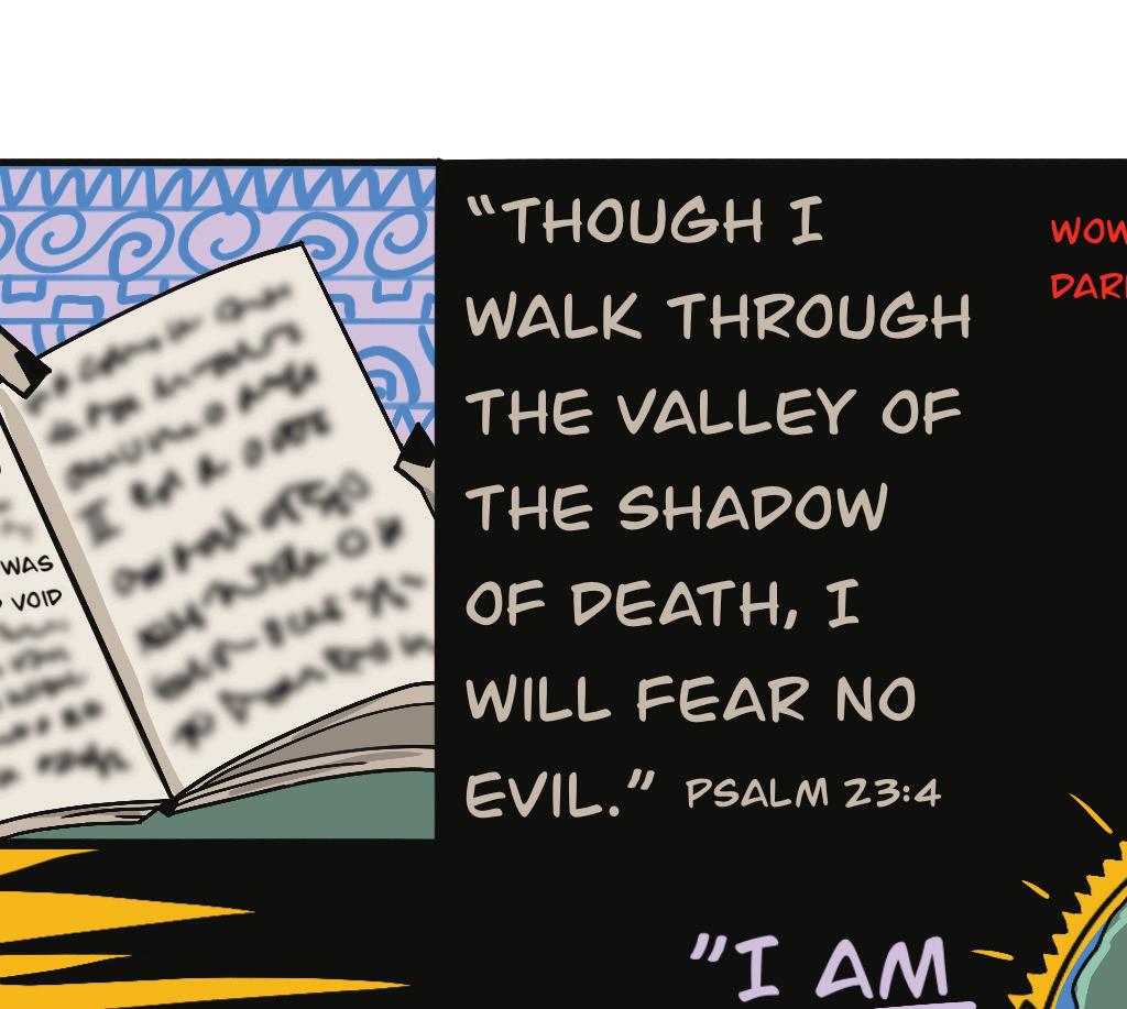 He leads me in paths of righteousness for his name’s sake. Even though I walk through the valley of the shadow of death, I will fear no evil, for you are with me; your rod and your staff, they comfort me.