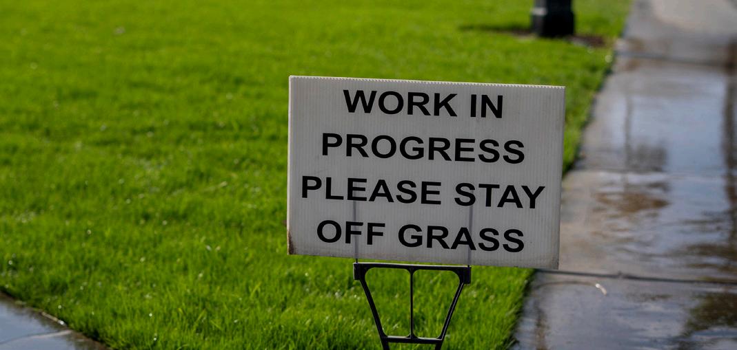 Other signs ask passersby to stay off the grass while the work was being completed,