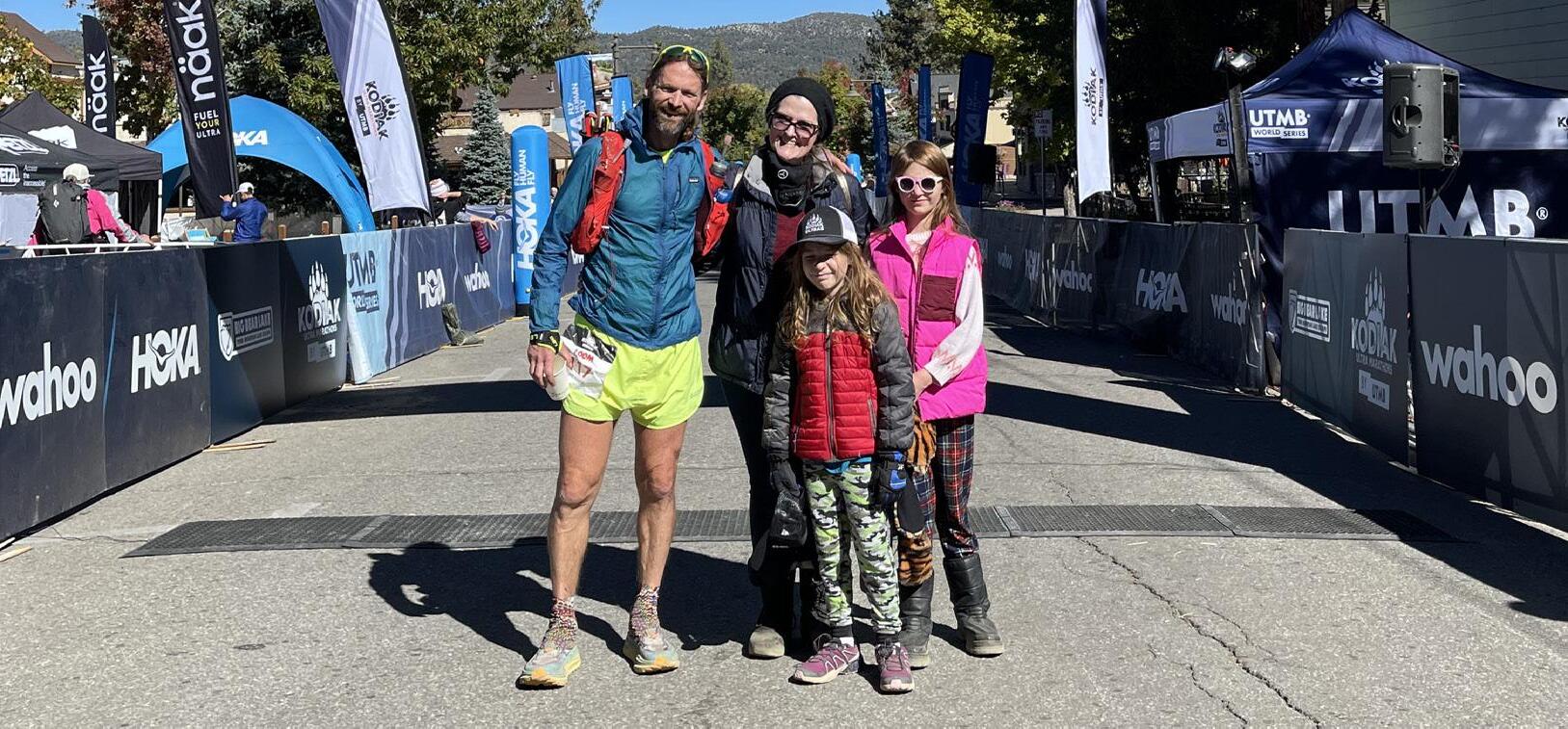 Dr. Nathanael Heyman and his family at the finish line after a race.