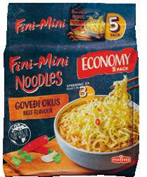 I z Podravke stiže jelo koje stvarno ima petlju - u samo tri minute lansirat će vas na Daleki istok i uvesti u zanimljiv svijet Fini Mini Noodlesa. Kreirani su tako da ugode baš svima i dostupni su u tri različita okusa - kokošji, goveđi i povrtni. Sve što je potrebno za jedan obrok nalazi se u jednom pakiranju - blok tjestenine i vrećice začina koji garantiraju odličan okus. Proizvodi su dostupni u jediničnom pakiranju od 75 g i u economy pakiranju od pet komada. Za pripremu ovog ukusnog obroka potrebne su vam samo tri minute, žlica ili štapić, zdjelica i vruća voda. Ovisno o prigodi ili preferencijama izaberite nešto iz šarolikog asortimana Fini Mini Noodlesa i razmazite svoje okusne pupoljke. Dopustite si da vas ovi okusi zapetljaju u ukusan svijet azij skih rezanaca jer su Fini petlju.imajelonoodlesiMinikoje