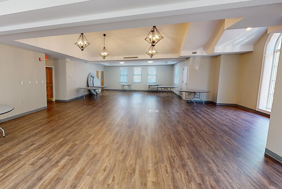 The former First Baptist Church of Jacksonville Fellowships Hall will become a usable and rentable space, complete with technology and equipment to accommodate dance, providing rehearsal space for the Marching Southerners Colorguard, JSU Center Stage Winterguard, Ballerinas, as well as our Special Topics in Dance. These instructors and staff also serve as choreographers for campus productions, so this rehearsal space provides ample space for those programs and productions to grow and have a rehearsal space like that encountered in the professional world. It is vital that all spaces in the ROC be multipurpose, and the rehearsal hall can also accommodate 150-200 for a seated meal and other types of events, complete with a catering kitchen adjoining the space. This infrastructure also allows us to utilize the rehearsal room for competitions and conferences as warm-up rooms and breakout sessions.