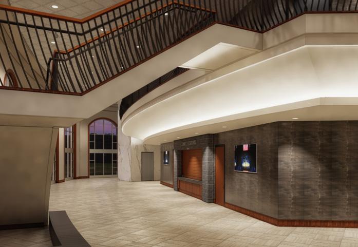The Lobby will serve as the primary entrance for patrons to the Randy Owen Center’s 1,000-seat concert hall and the existing 450-seat recital hall. The lobby is home to the box office and guest services window, concessions, and restroom facilities, serving both the new and existing spaces. Built in technology allows for screens to show the concert hall performances in real time, with speakers broadcasting the live feed, so patrons running to get concessions won’t miss a moment of the events.