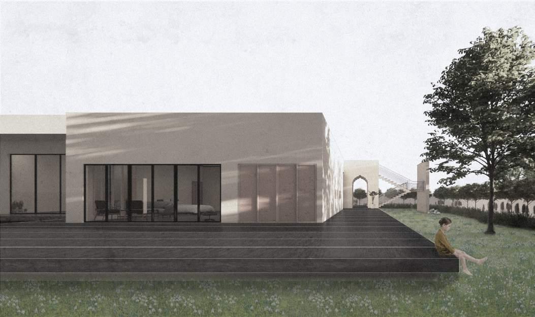 This house is situated in a densely populated residential area on a plot measuring 42x75 meters. The primary objective was to create a private space within the bustling surroundings and design an visually captivating structure amidst the chaotic backdrop. The client’s requirements were for a simple and spacious residence to accommodate a family of five. They desired a contemporary house featuring a formal living area and a swimming pool. Additionally, the house needed to incorporate passive cooling techniques due to the hot and arid climate of the location in Jaipur. The client also requested separate rooms for their parents, children, and two guest rooms in addition to a master bedroom.