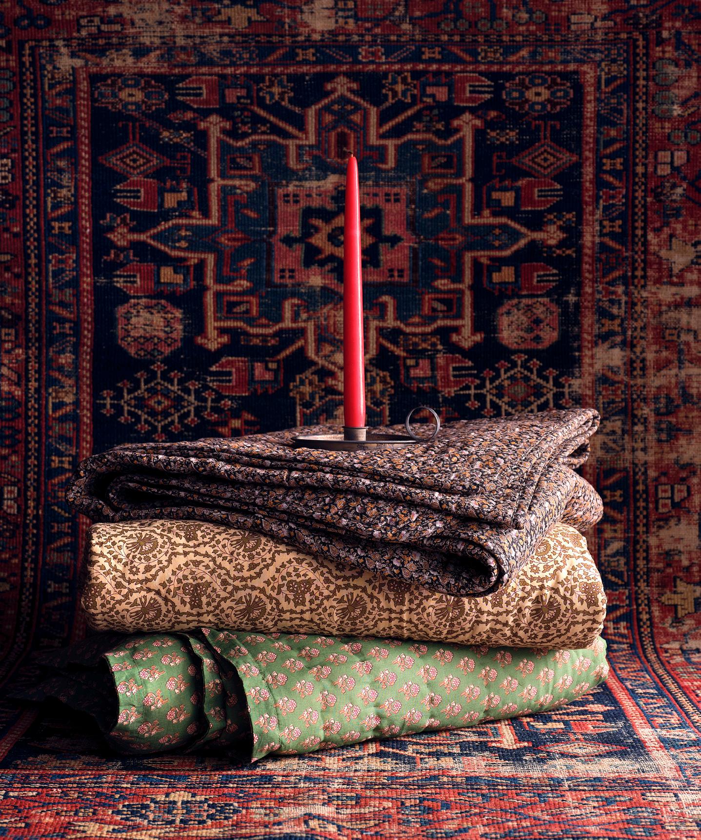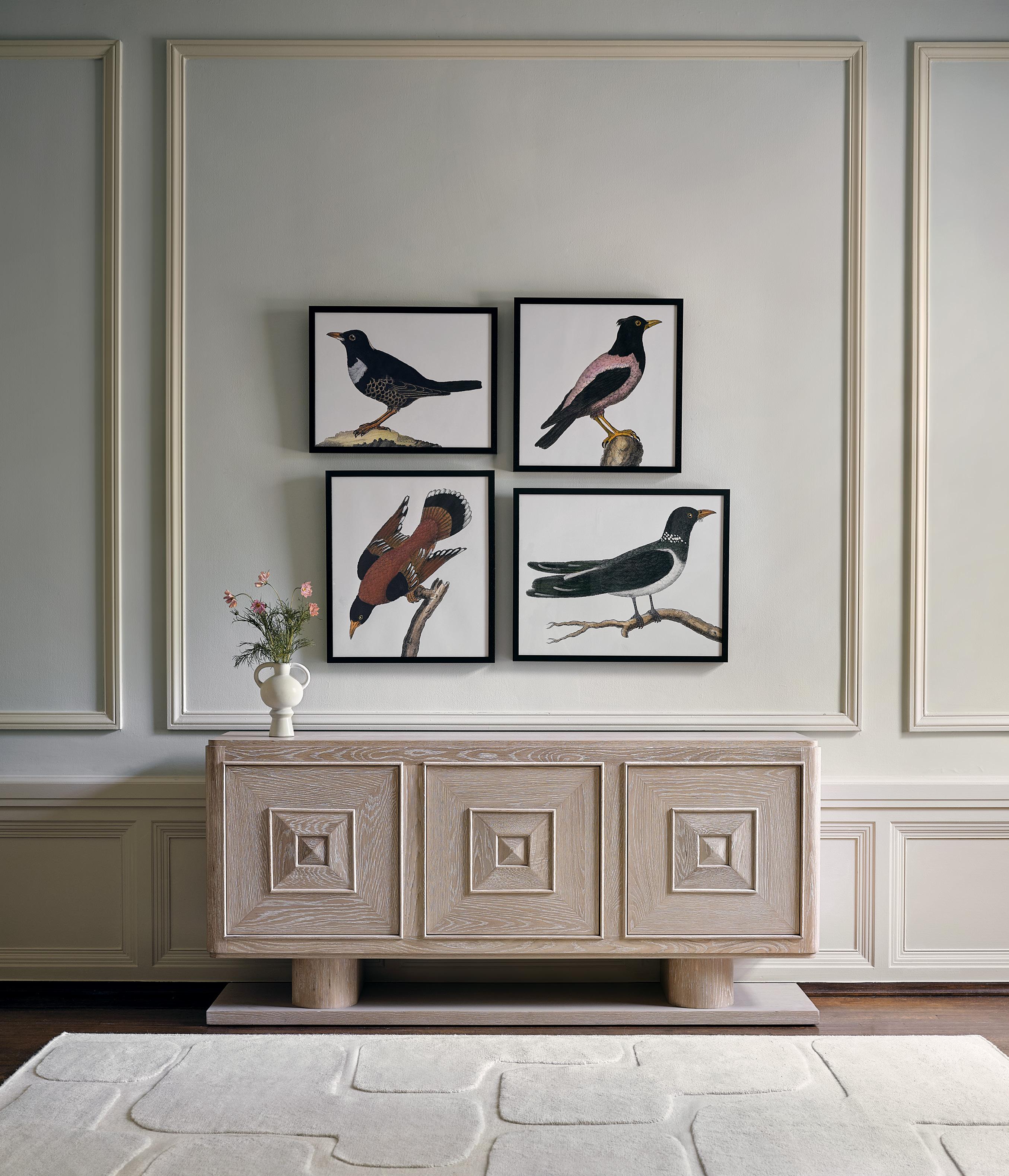 THIS PAGE: MYSIG THROWS $395 EA mohair wool, available in eight colors • ANTIQUE UNUPHOLSTERED TUFTED CHAIRS $3,495 EA • VINTAGE SUZANI TEXTILE $1,595 embroidered cotton OPPOSITE PAGE: OBISPO CREDENZA $3,995 cerused oak • CUZCO VASE $98 glazed stoneware • ORNITHOLOGIE ART COLLECTION $595 - $695 giclée • ERNO RUG starting at $395 hand knotted wool, available in six sizes