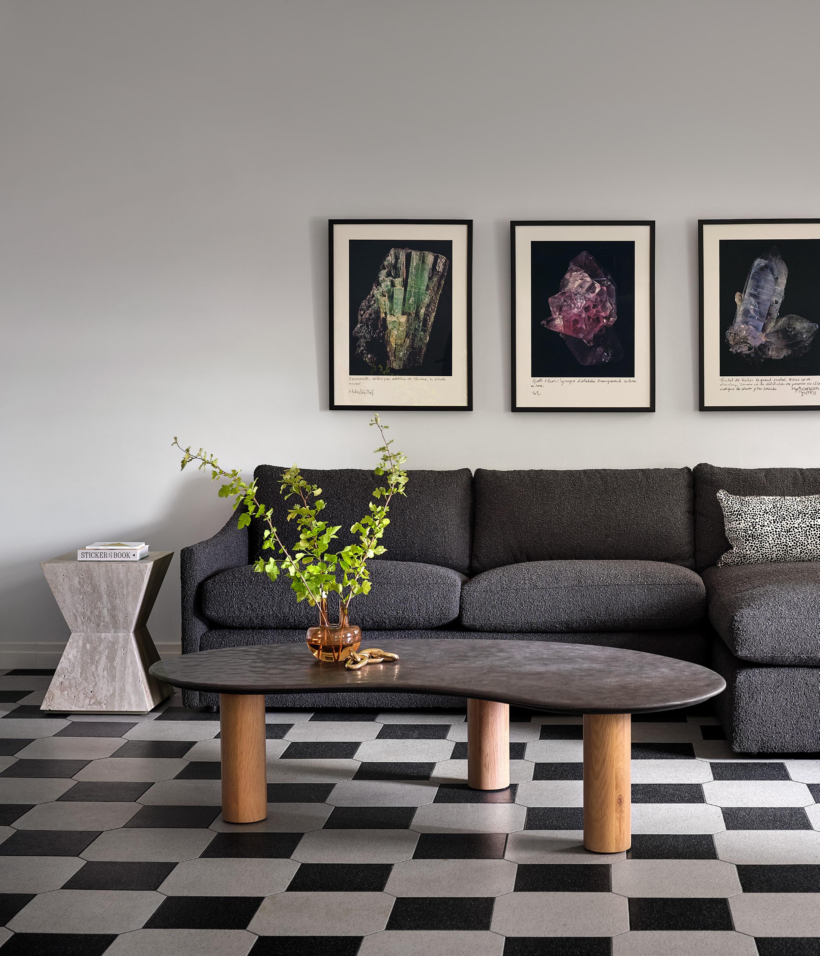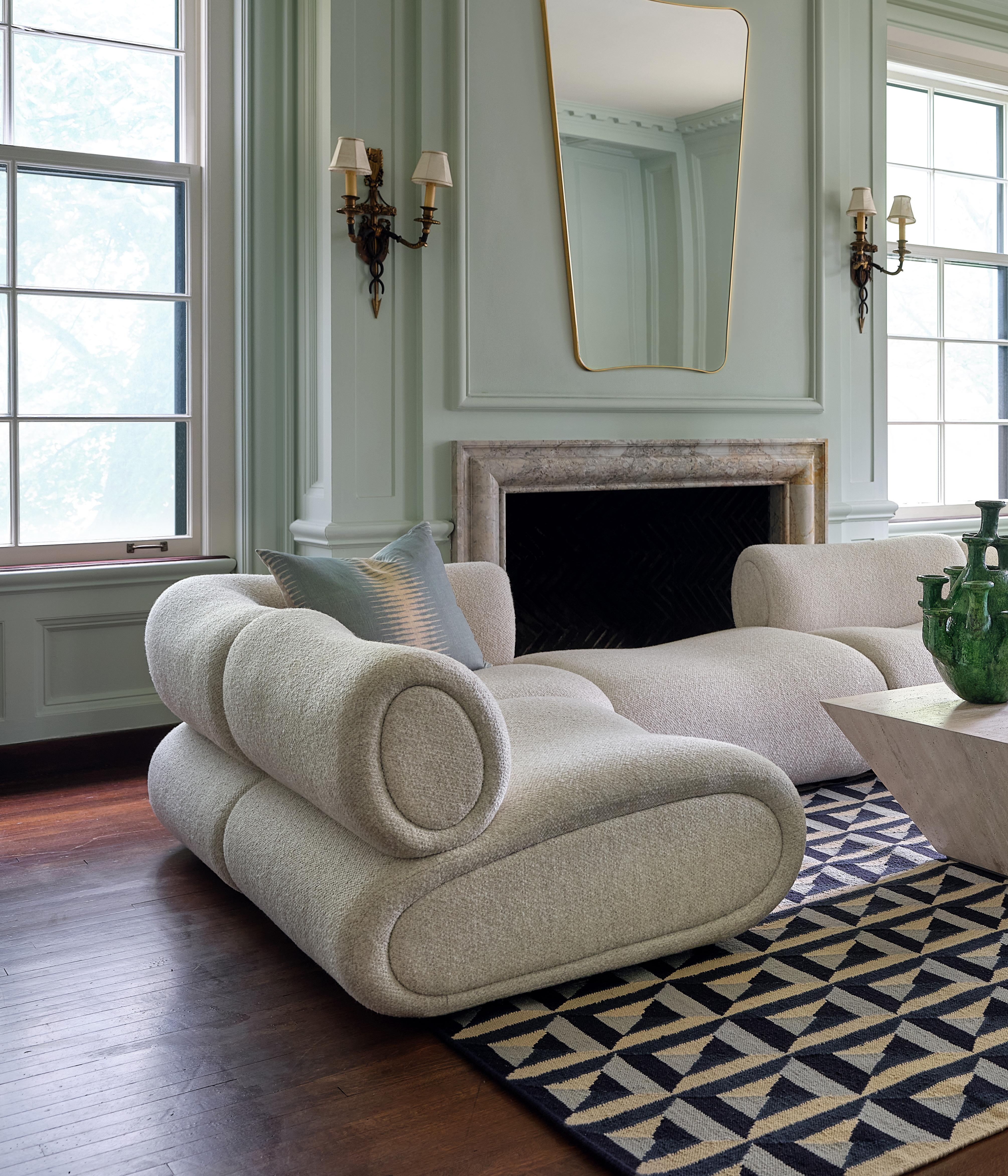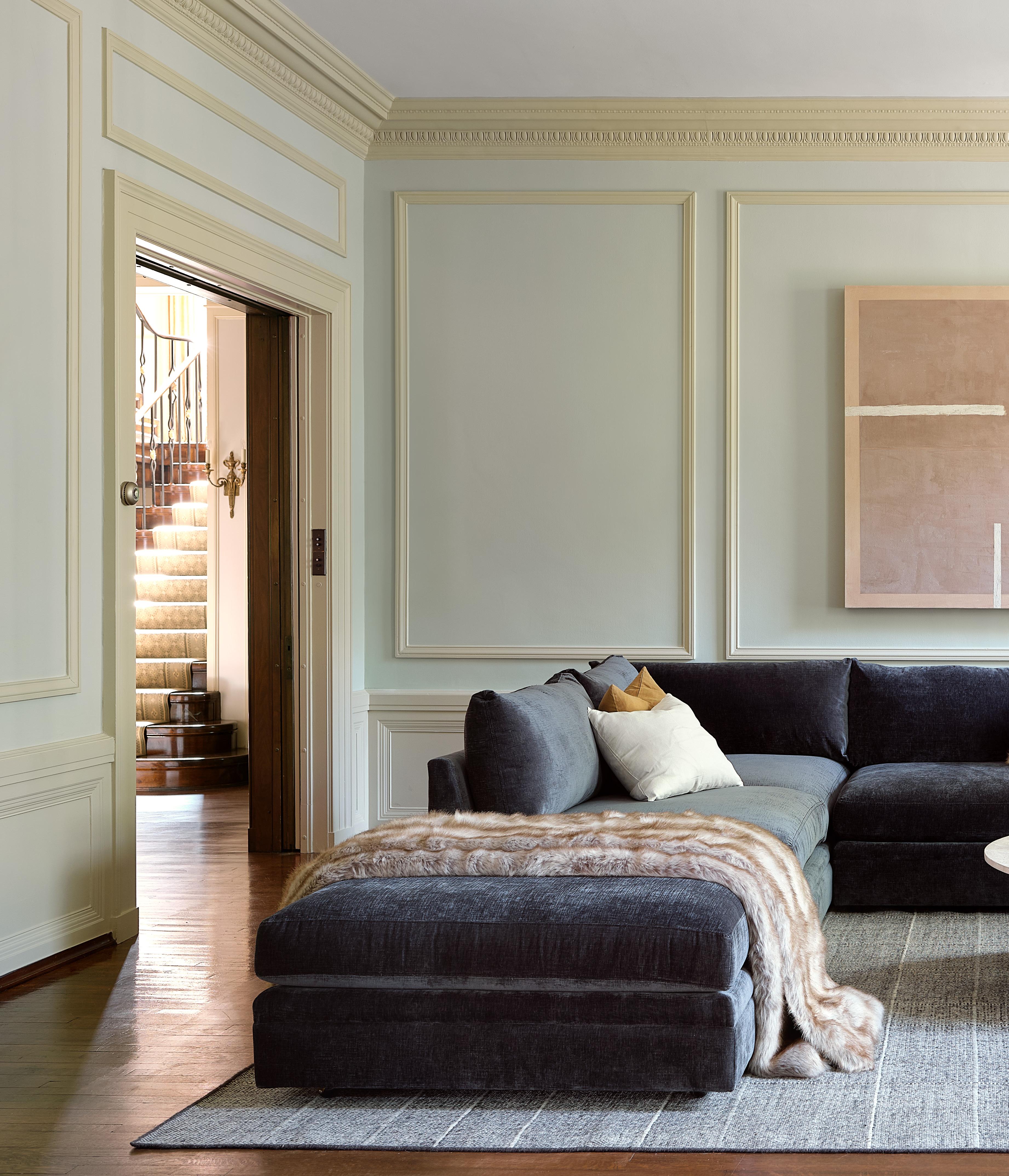 CLYDE MODULAR SECTIONAL $8,140 as shown, priced individually from $1,350 vickie-night velvet • WEAVER COCKTAIL TABLE $3,195 travertine, oak • OJAI CHAIR $1,995 cuddle-natural faux shearling, metal • ALPINE COLLECTION blanket $695 pillow $295 faux fur • RAINIER PILLOWS $150 EA stonewashed linen, available in eight colors • ETTORE SOTTSASS $7995 • ARCHITECTURAL DIGEST AT 100 $125 • FREDERIC: THE LAST WORD IN CHIC $8495 • CONTINUUM SCULPTURE $230 brass-finished aluminum • PELHAM TRAY $195 lacquered finish • MOAB VASE $350 glazed stoneware • SHEEPSKIN $225 hair on hide • DITTO ARTWORK $2,095 giclée on canvas • TATUM RUG starting at $195 handwoven wool, available in seven sizes