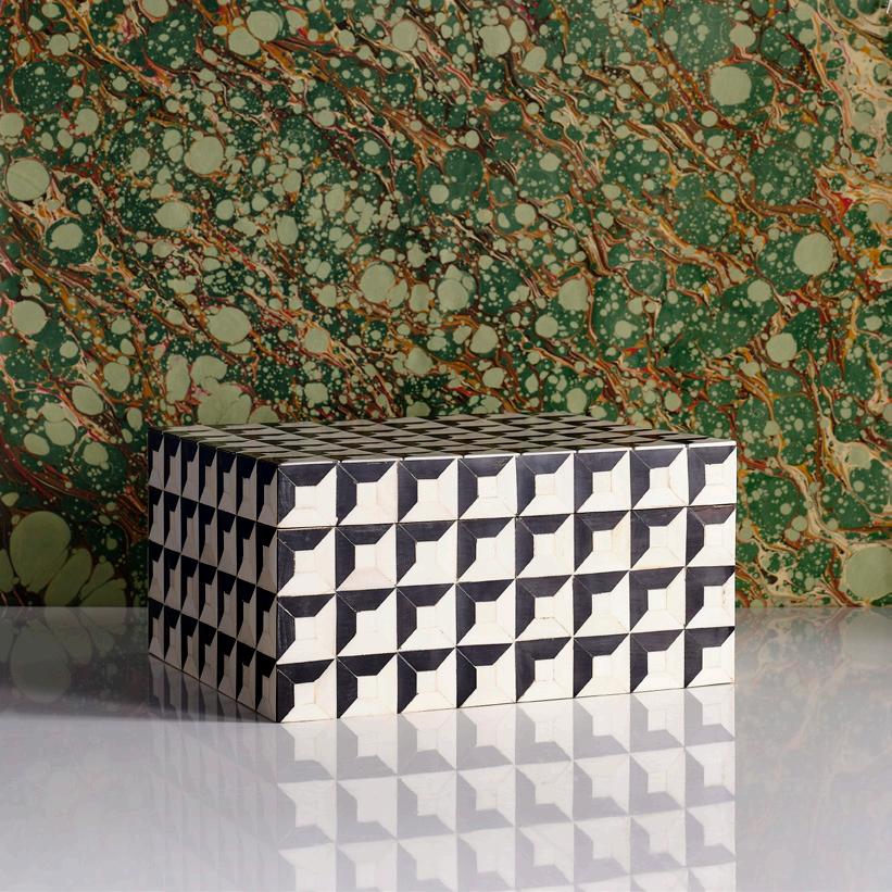 6 COFFERED INLAY BOX $225 natural bone and buffalo horn tiles