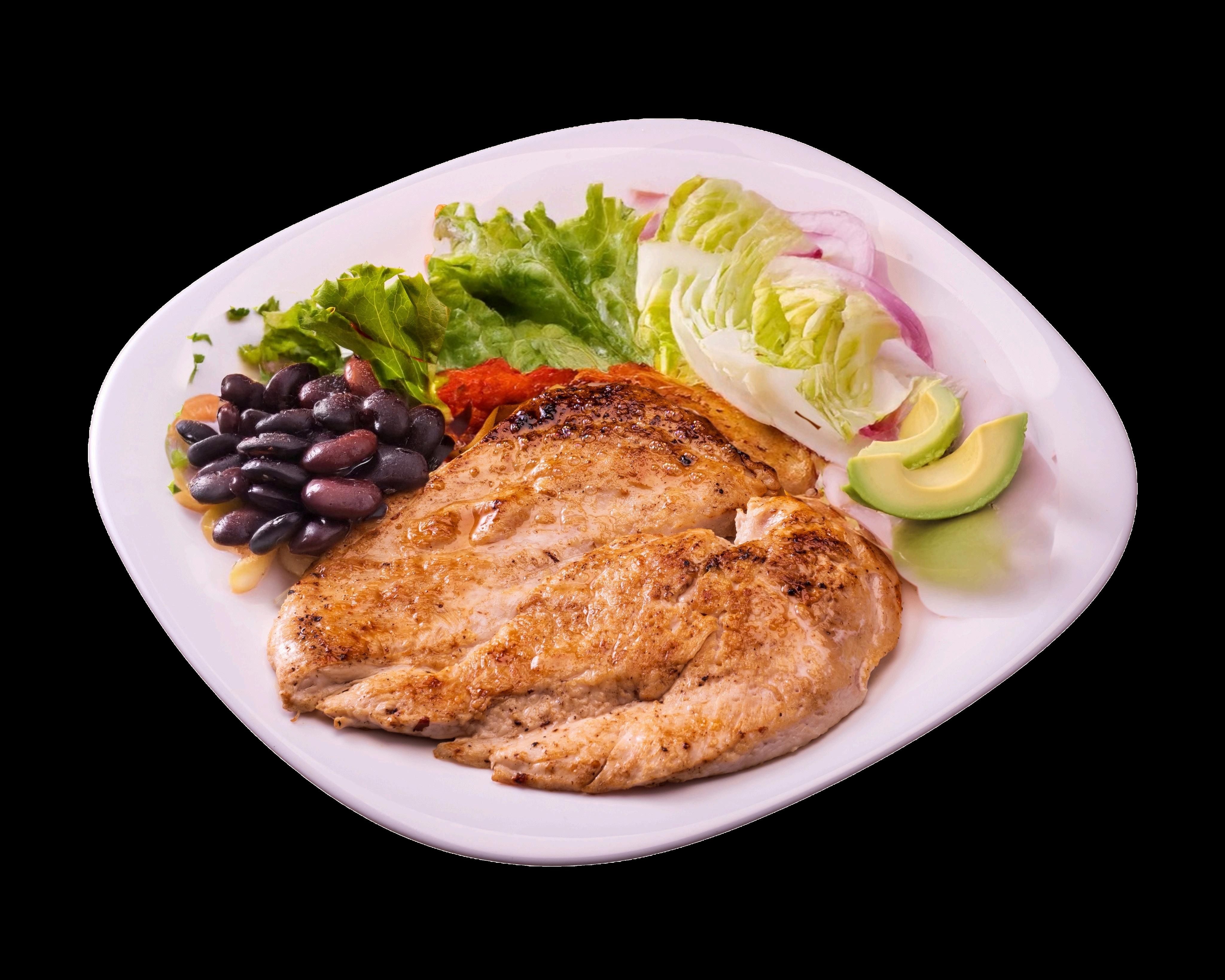 Pechuga a la plancha con ensalada, frijolitos y tortilla