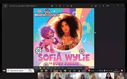 7:30 a.m. Working with our brand team in London means early morning Teams updates from home. Swooning over promo art of our Bridlewoodstock celebrity guest, Sofia Wylie, who voices Ruby Jubilee.