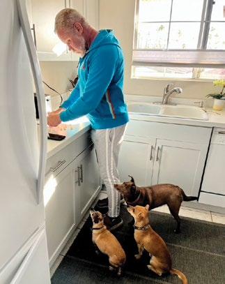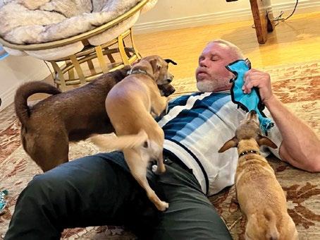 6:30 p.m. Playtime at home! My three pups attack daddy to get their energy out at the end of a long day for all of us.