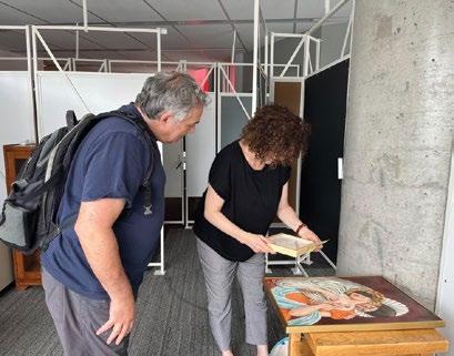 I am with the brilliant animator Claude Cloutier as we examine the strange harlequin romance painting that our dearly departed friend and legendary supporter of animation, Hélène Tanguay, gave to me. She really understood my aesthetic. Photo: Rose Mercier-Marcotte