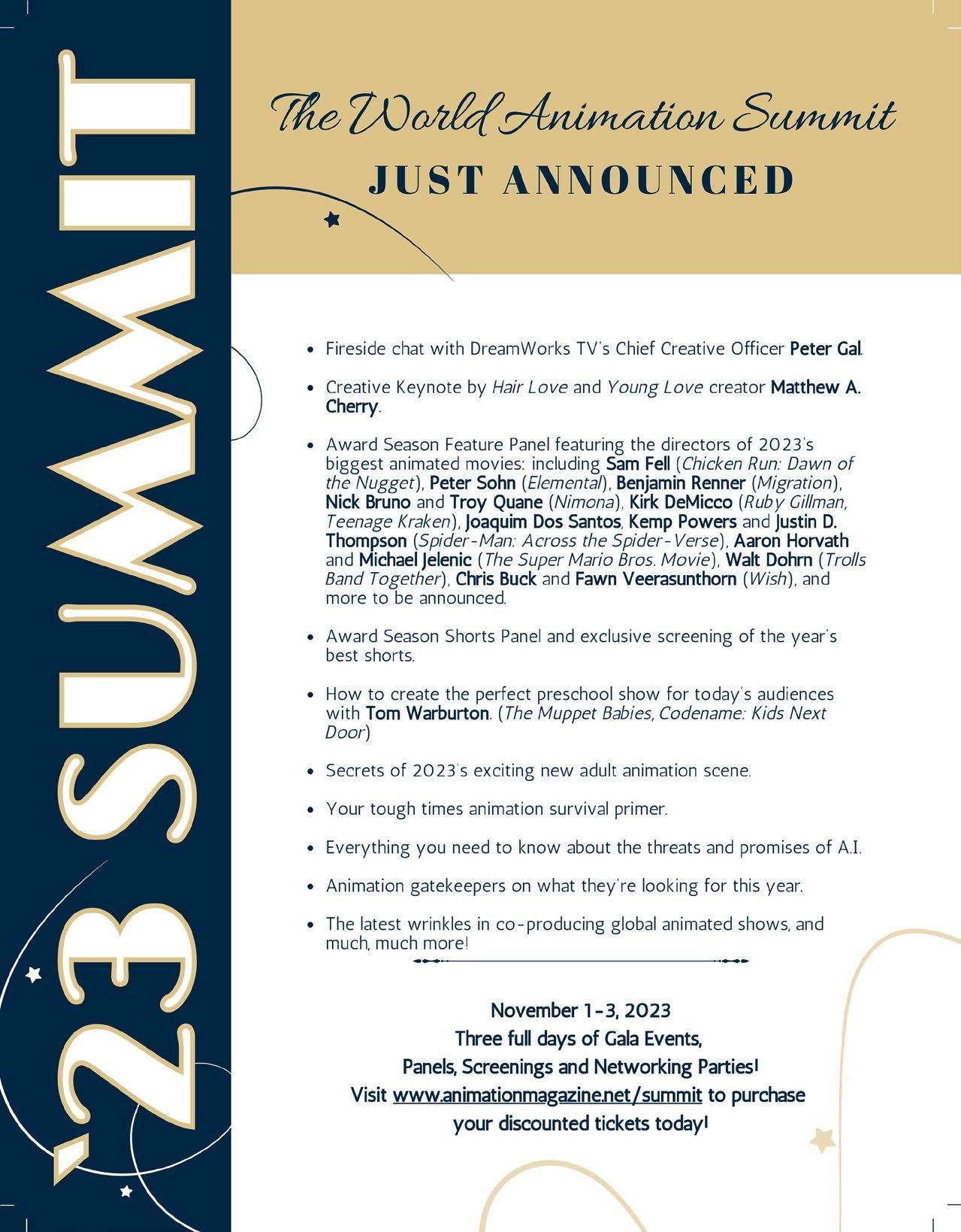 We have two big animation event spotlights in this issue as well. The first one should be familiar to anyone who is interested in the global animation content scene: MIPCOM’s organizers are planning a big year for the animation professionals who travel to the Cannes market October 16-19. You can read about some of the event’s newsmakers in this month’s issue, and we’ll keep you updated on breaking news from the Croisette on our website (and newsletter) during the market. We also have a great preview of this year’s Animation Is Film festival, which will bring a rich collection of global animated features to the Chinese Theatre in Hollywood the weekend of October 18-22. In addition to the U.S. premiere of Hayao Miyazaki’s The Boy and the Heron, the organizers have assembled quite a dazzling lineup of acclaimed titles for the 2023 edition of the festival. Also on tap are wonderful sneak peeks and spotlights on studio fare such as Disney’s Wish and Illumination’s Migration for die-hard fans.