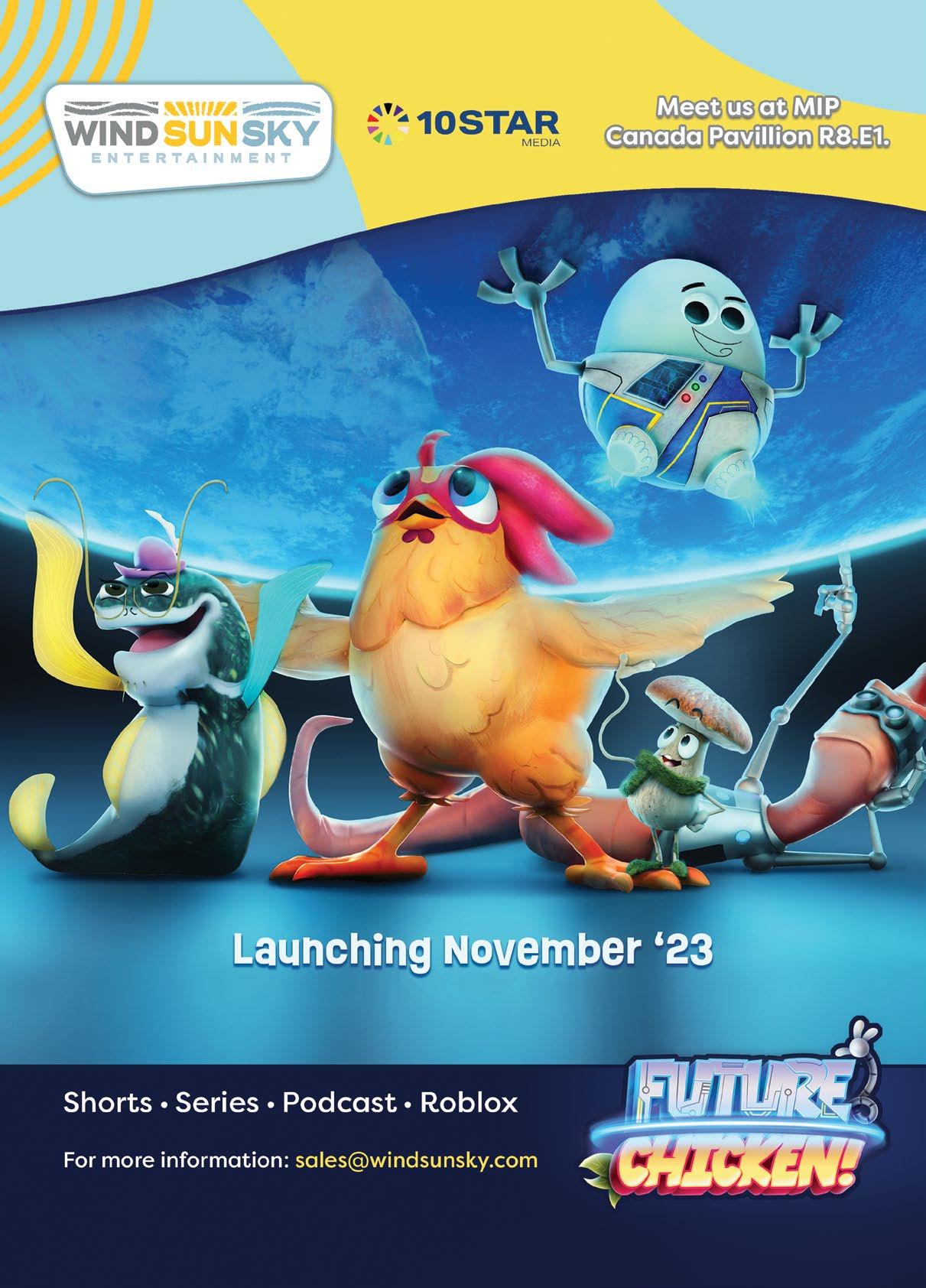 Future Chicken content will start to drop in early November 2023 on YouTube, Roblox, a Podcast and website Futurechicken.com with additional partnerships to be announced soon. For more info, visit futurechicken.com.