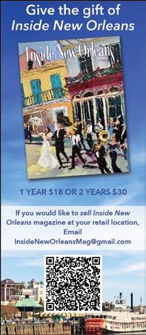 Subscriptions 1 Year $18 2 Years $30 phone (504) 377-7646 email insideneworleansmag@gmail.com insideneworleans.magazinemanager.com/subscribe