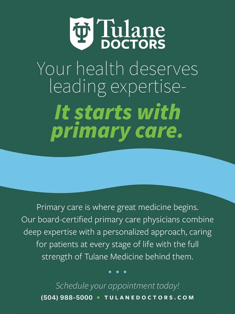 This month, I’ve had the pleasure of writing about truly remarkable people and places. With a packed list of Leading Doctors on pg, I’m excited to share some highly recommended New Orleans physicians, all of whom have made a meaningful impact on the lives of so many of our readers. As you can see, you voted for them!