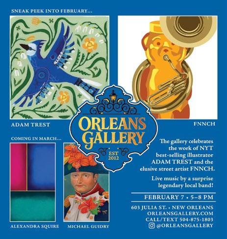 INSIDE NEW ORLEANS is published bi-monthly (February, April, June, August, October, December) by JBL Publishing, LLC, PO Box 7603, Metairie, LA 70010-7603 as a means of communication and information for greater New Orleans, Louisiana. Bulk Postage paid - New Orleans, LA. Copyright ©2026 by JBL Publishing, LLC. No part of this magazine may be reproduced without written consent of publisher. Publisher is not responsible for unsolicited manuscripts and artwork. Inside New Orleans Magazine is created using the Adobe Creative Suite on Apple Macintosh computers. February-March 2026 Vol. 13, No. 1 Visit InsideNewOrleansMagazine.com to view our online issue with direct links to our advertisers’ sites. Artist Denise Hopkins. Find more on page 10.