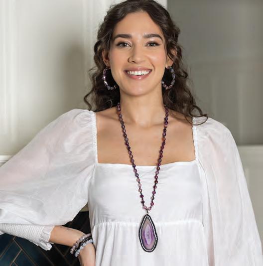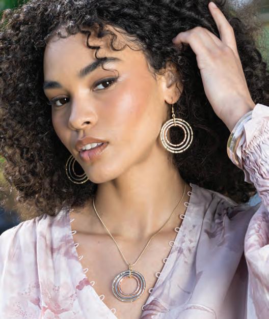 A. B. C. D. E. A. JOLENE EARRINGS 2 1/2" diameter £40 - #13925 E. SUNSET EARRINGS Glass Beads 2 3/4" £46 - #13641 C. BOMBSHELL BRACELET Crystals and Handpainted Enamel Black, Pink or White - Stretch to Fit £148 - #14012 B. ELECTRIC NECKLACE Gold or Silver - 2 in 1 style Crystals - 15" & 17" + 3" £44 - #14004 D. DOMINO RING Titanium Carbide White or Black - Size 6-10 £52 - #13233 F. F. SAFARI BRACELET Genuine Agate Set of 2 - Stretch to Fit £110 - #13820 8 PARK LANE JEWELRY | 2023 STYLE BOOK