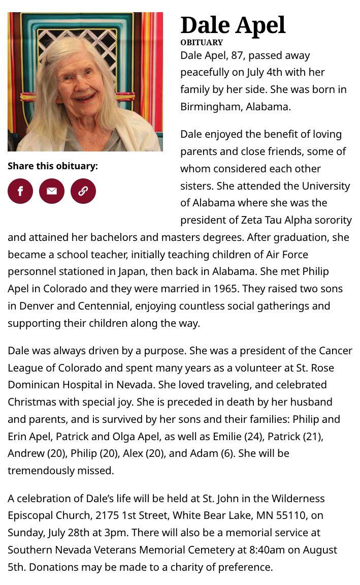 This online only obit is ~$1125