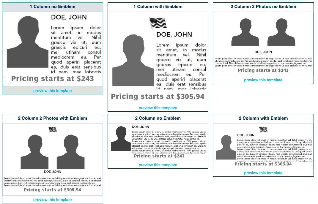 Obituary template options