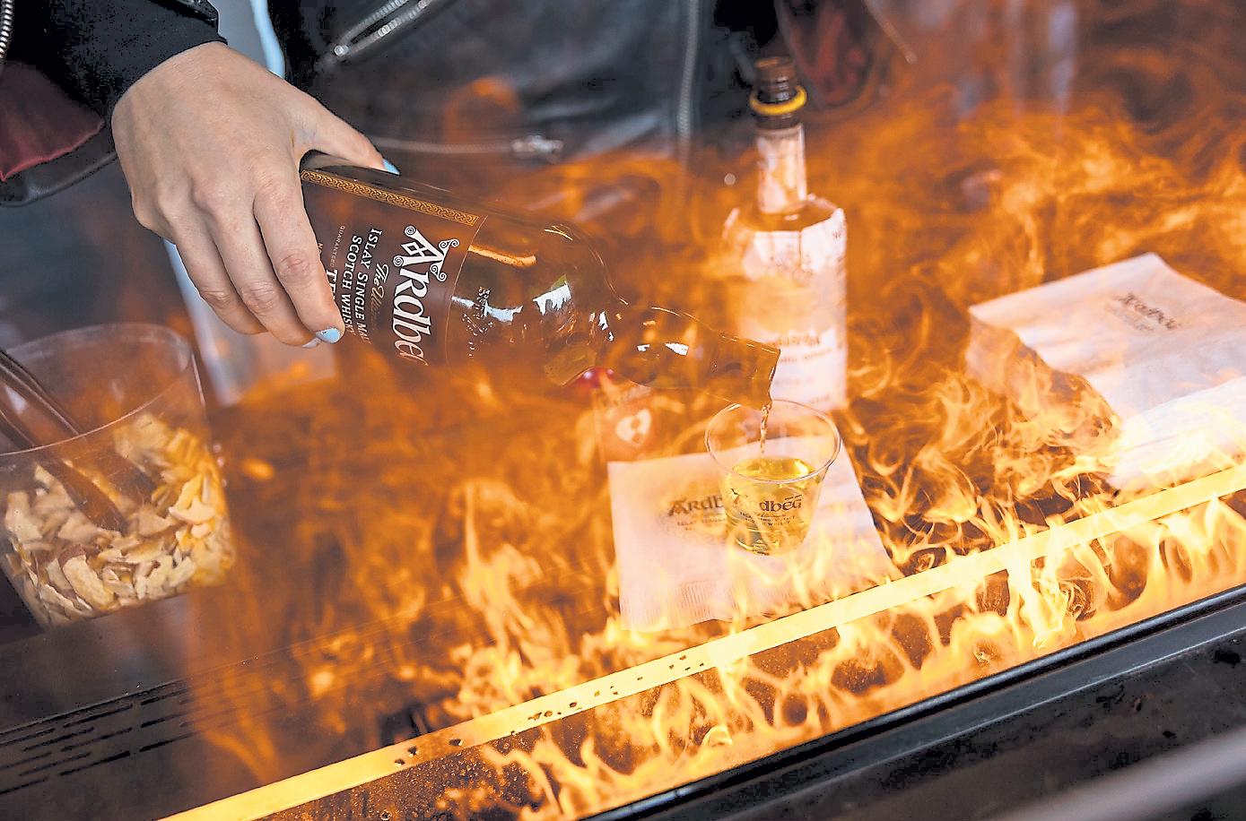 Jorge Labr a, a cook at Cafe Jordano, je ts cognac into a pan while preparing the Buff alo Royal on May 22.