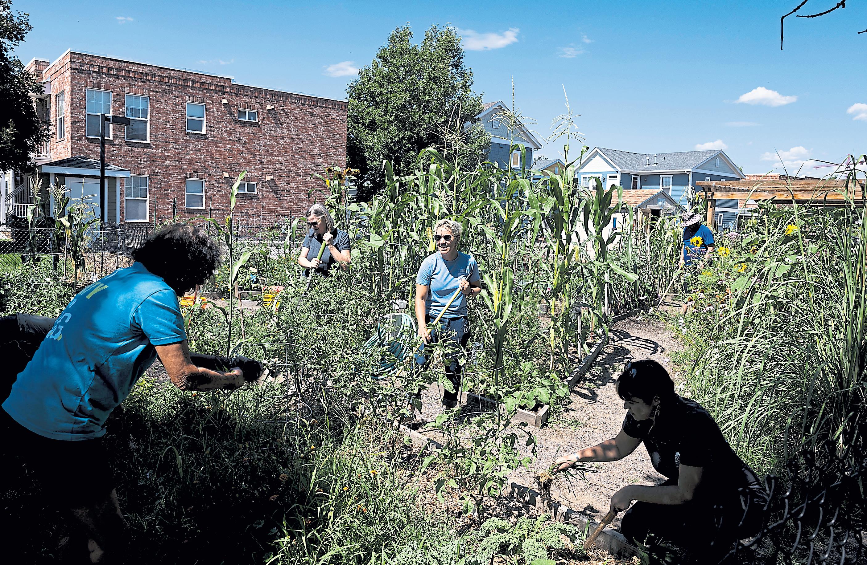 The city of Wheat Ridge lent her two commercial plot s of la nd behi nd the city ’s commun it y ga rden , where she cultivated the beans, corn and squa sh (including Apache gourds and La kota squa sh) along with sunflowers. It ’ll be a couple of years until the crops are ready to ha rvest, she sa id