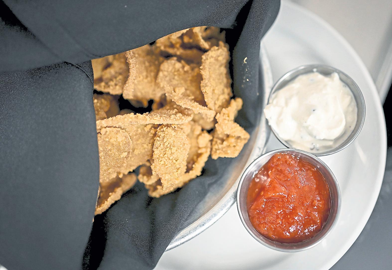 se a. They ’re ac tual ly bu ll te st icle s that chef s at The Buck hor n Exchan ge sl ic e th in , br ea d and then fr y. They ’re served as an appetizer with three house sauces for dipping.