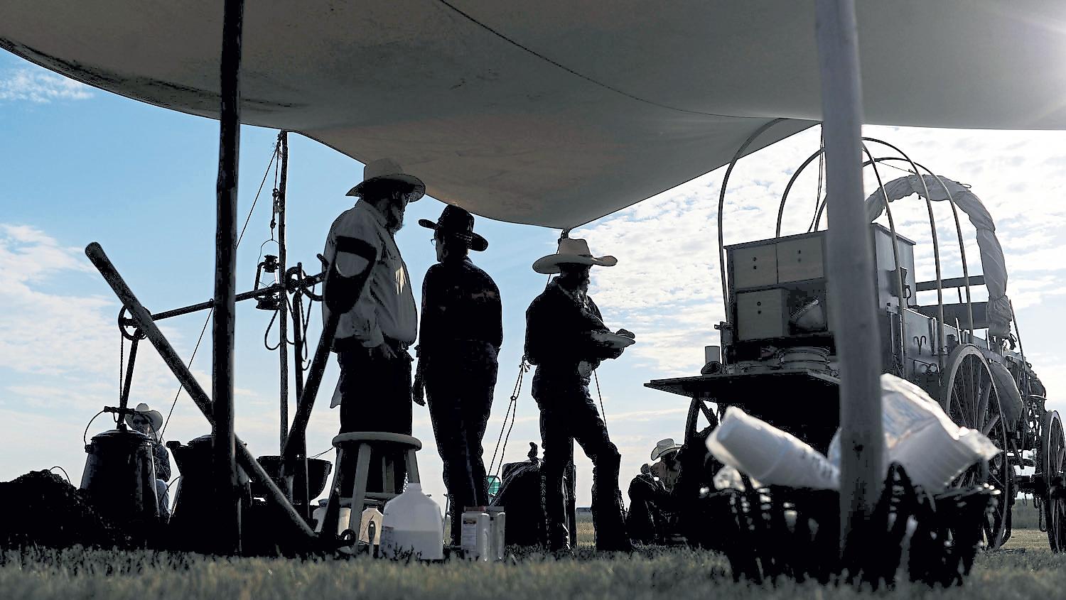 Cowboys eat breakf as t near the chuckwagon during the Cheyenne Frontier Days Cattle Drive in Cheyenne in 2011