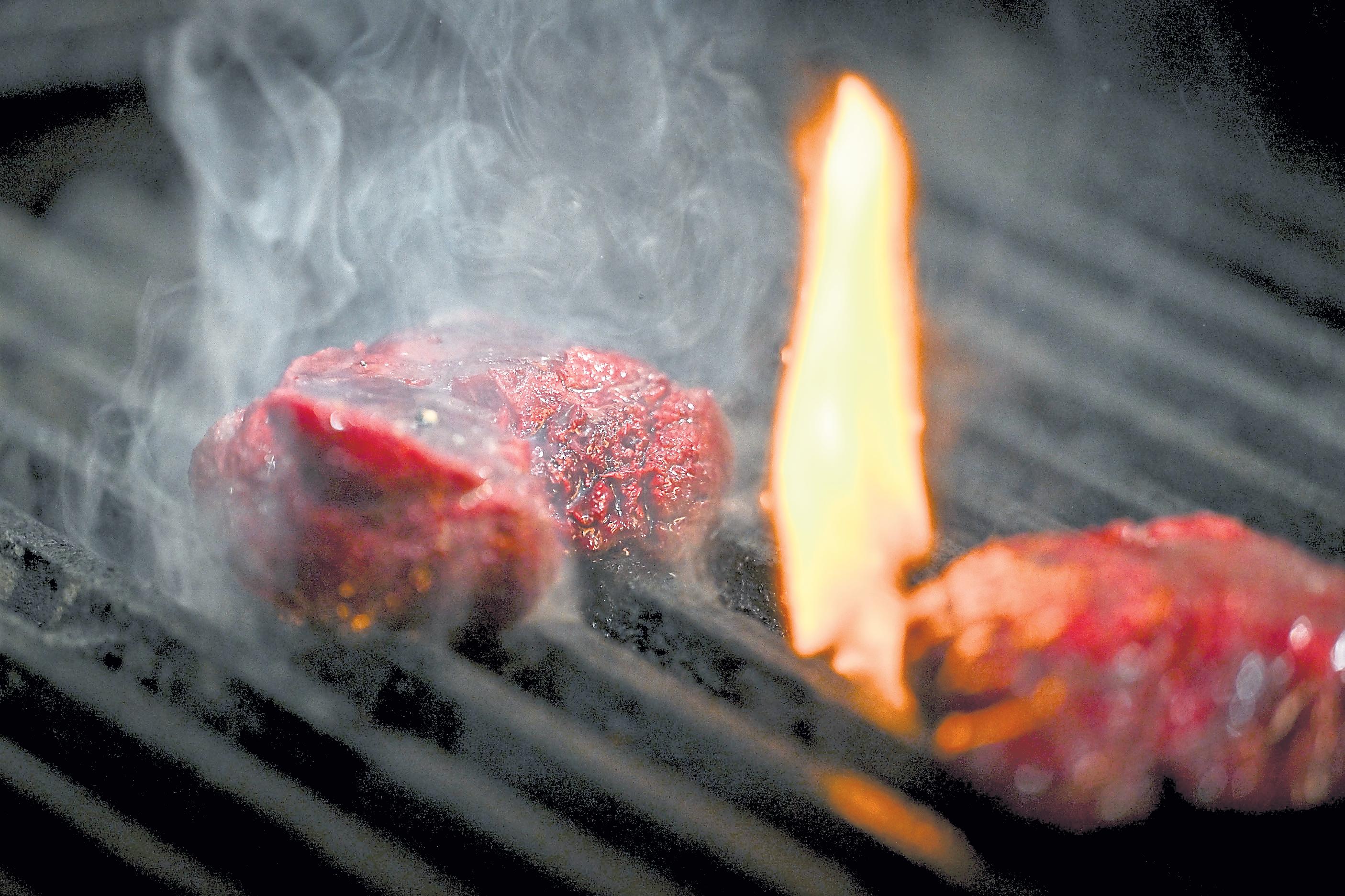 (The grill is typically hot enough when the charcoal turns gr ay If it’s flaring, it’s too hot.