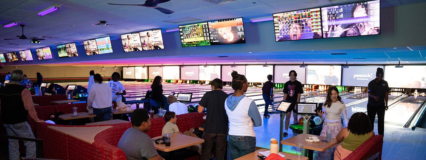 Set your channel to listen to your favorite music genre while our DJs battle for your attention. Regular bowling rates apply.